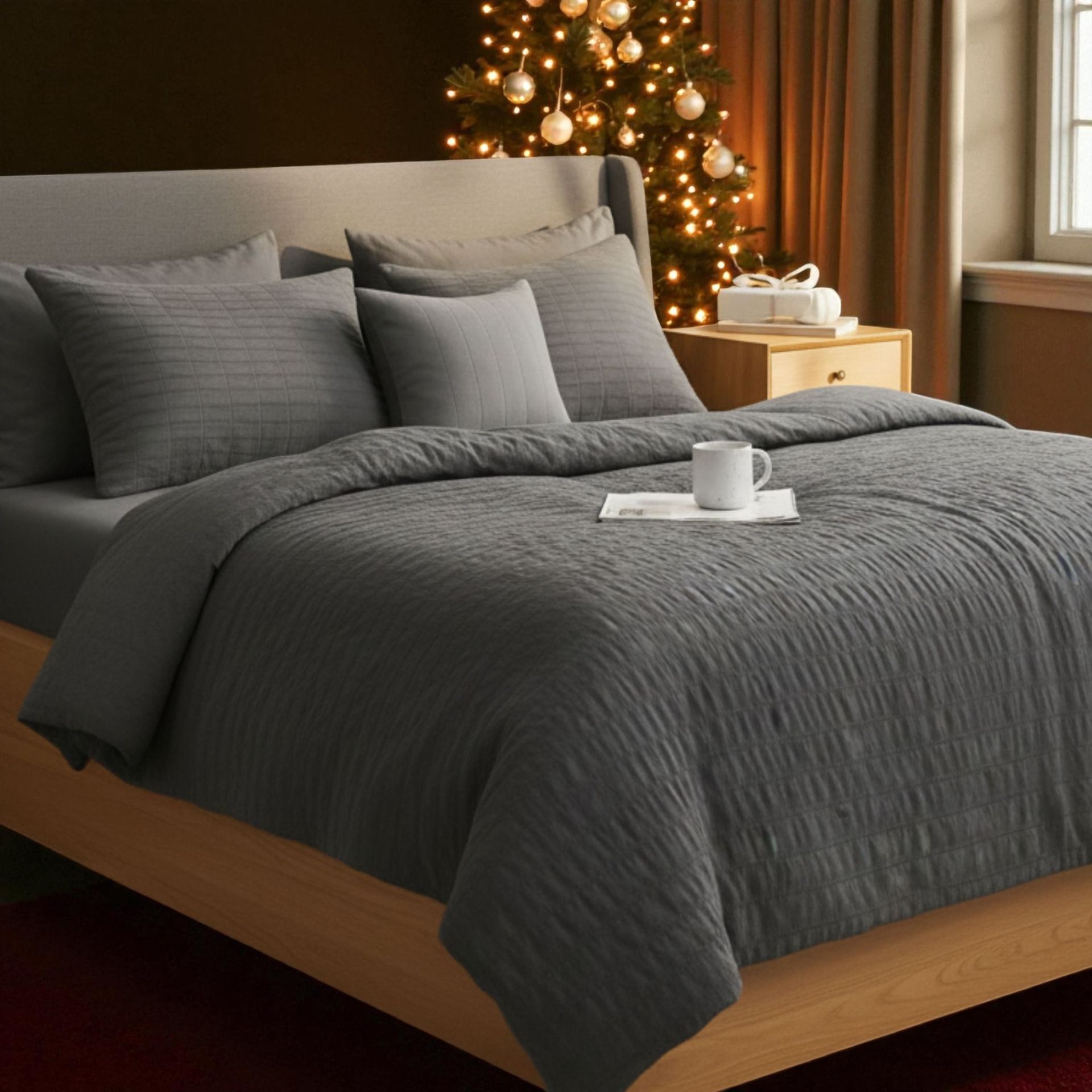 Підковдра та наволочки з жатою текстурою виглядає об’ємно та фактурно.
