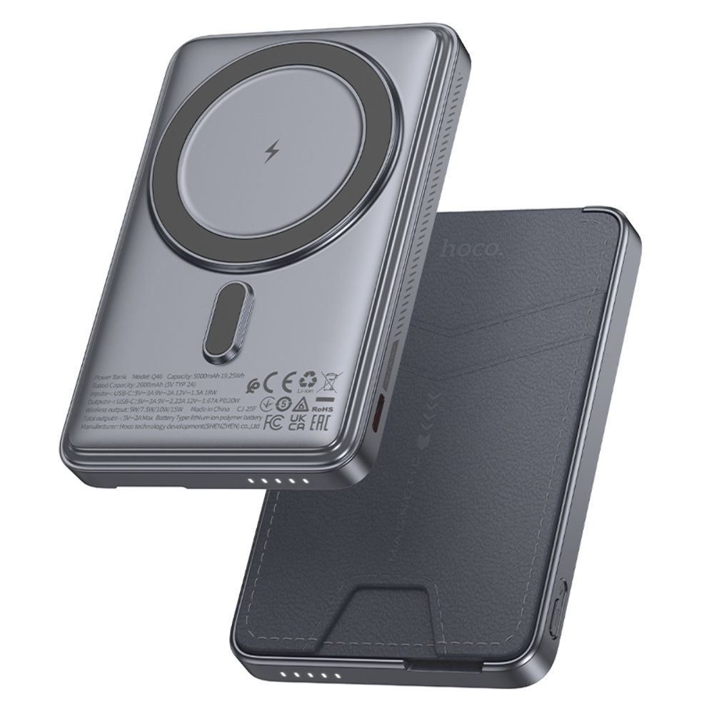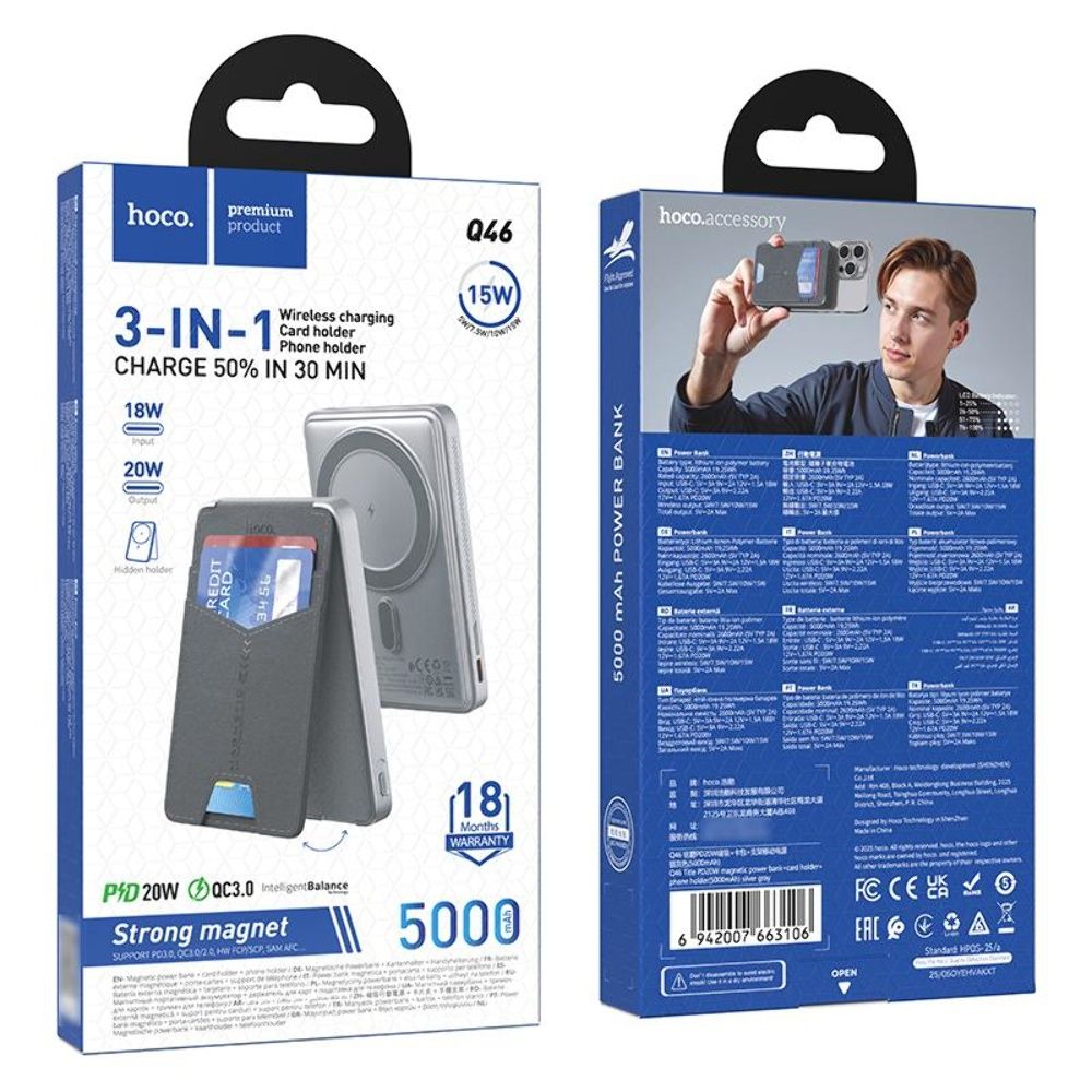 Повербанк Hoco Q46, 5000mAh, PD 20W, магнітний, з бездротовою зарядкою, silver gray