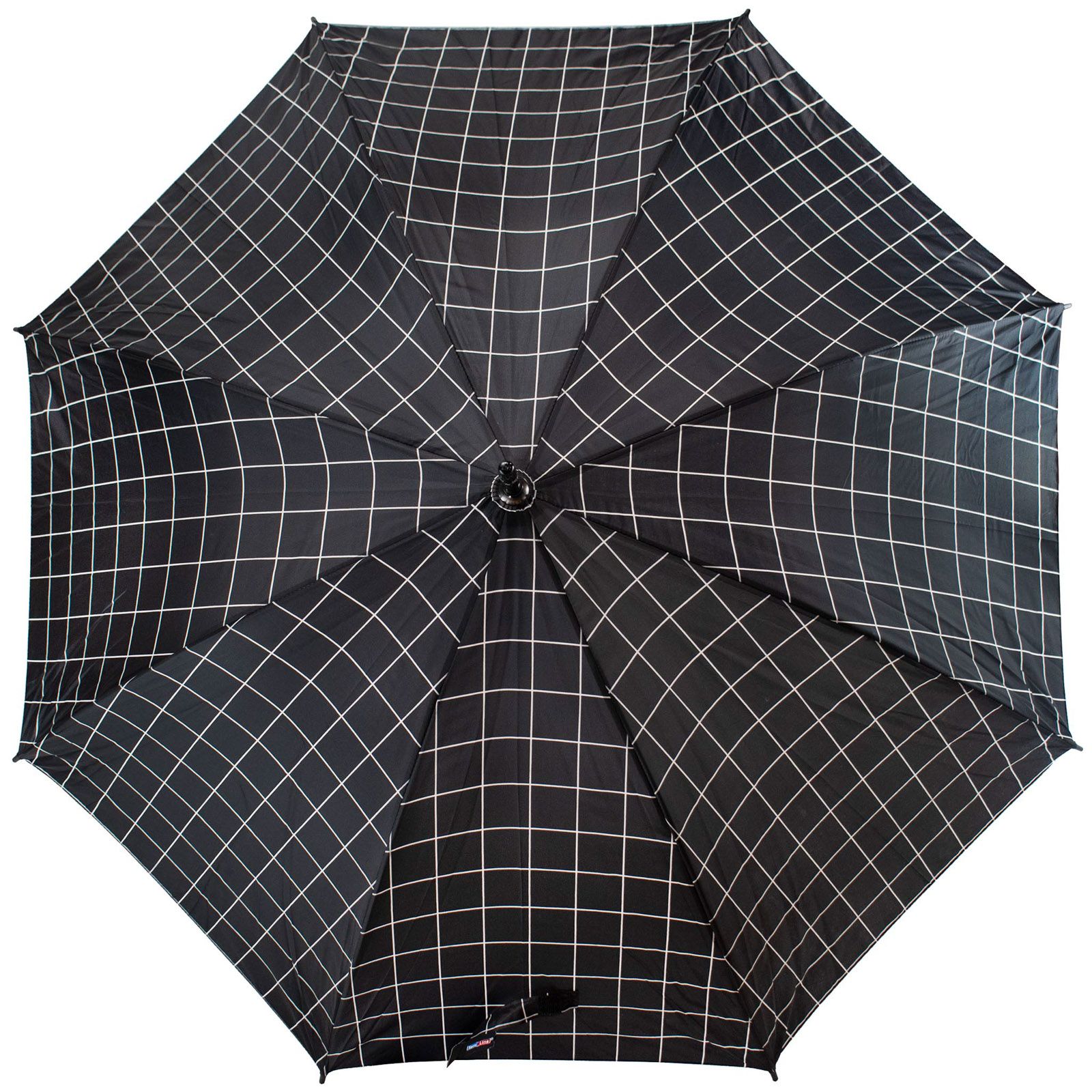 Semi Line Grid Black (L2037-5) — це класична парасоля-тростина з великим куполом діаметром 104 см, яка поєднує надійний захист від негоди з сучасним графічним стилем. Чорний купол із білими лініями у формі клітинок додає виразності, а загнута ручка забезпечує комфорт у щоденному використанні.