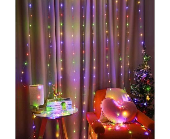 Світлодіодна USB гірлянда штора RGB, 3x2 м, без гачків, 8 режимів, з пультом