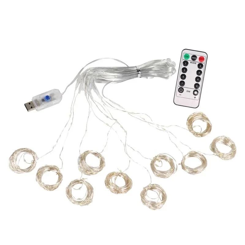 Гірлянда-штора-роса №5 (3x2м, холодний білий, USB, Пульт, 8 режимів)2 відгуки