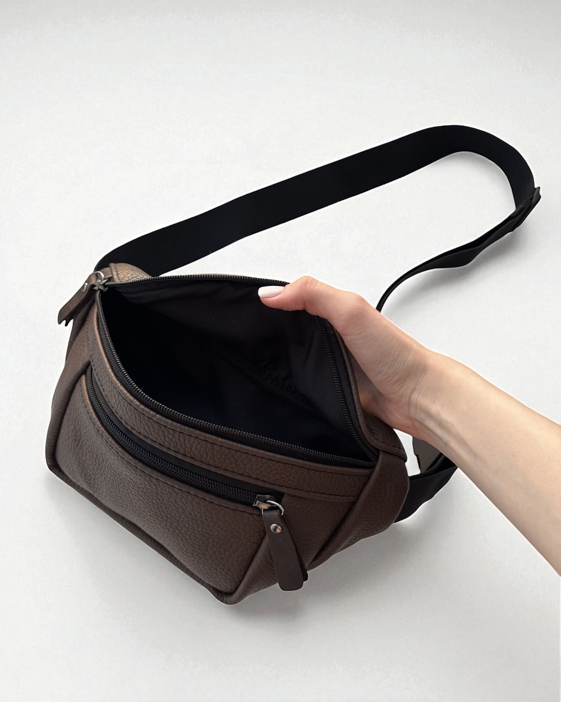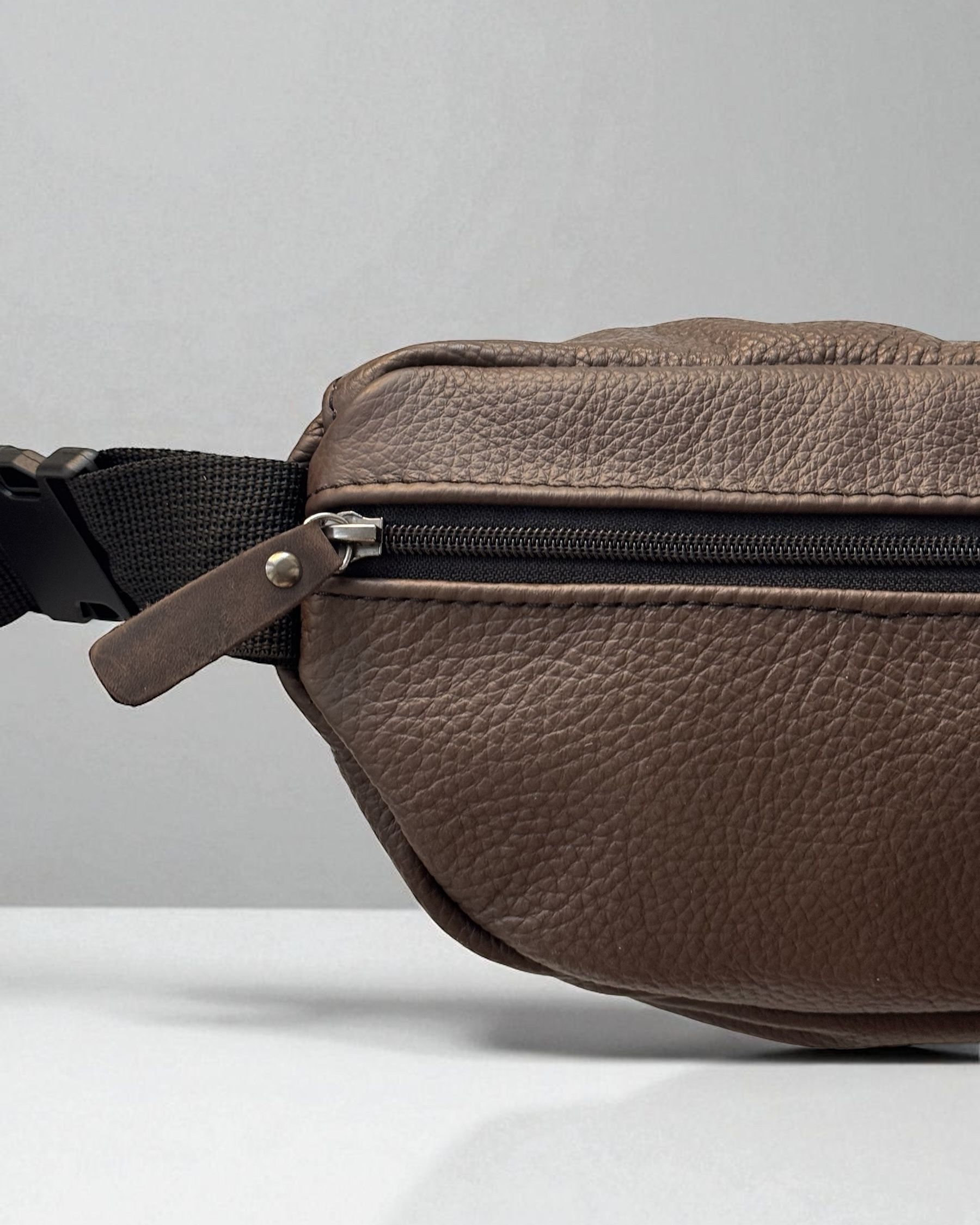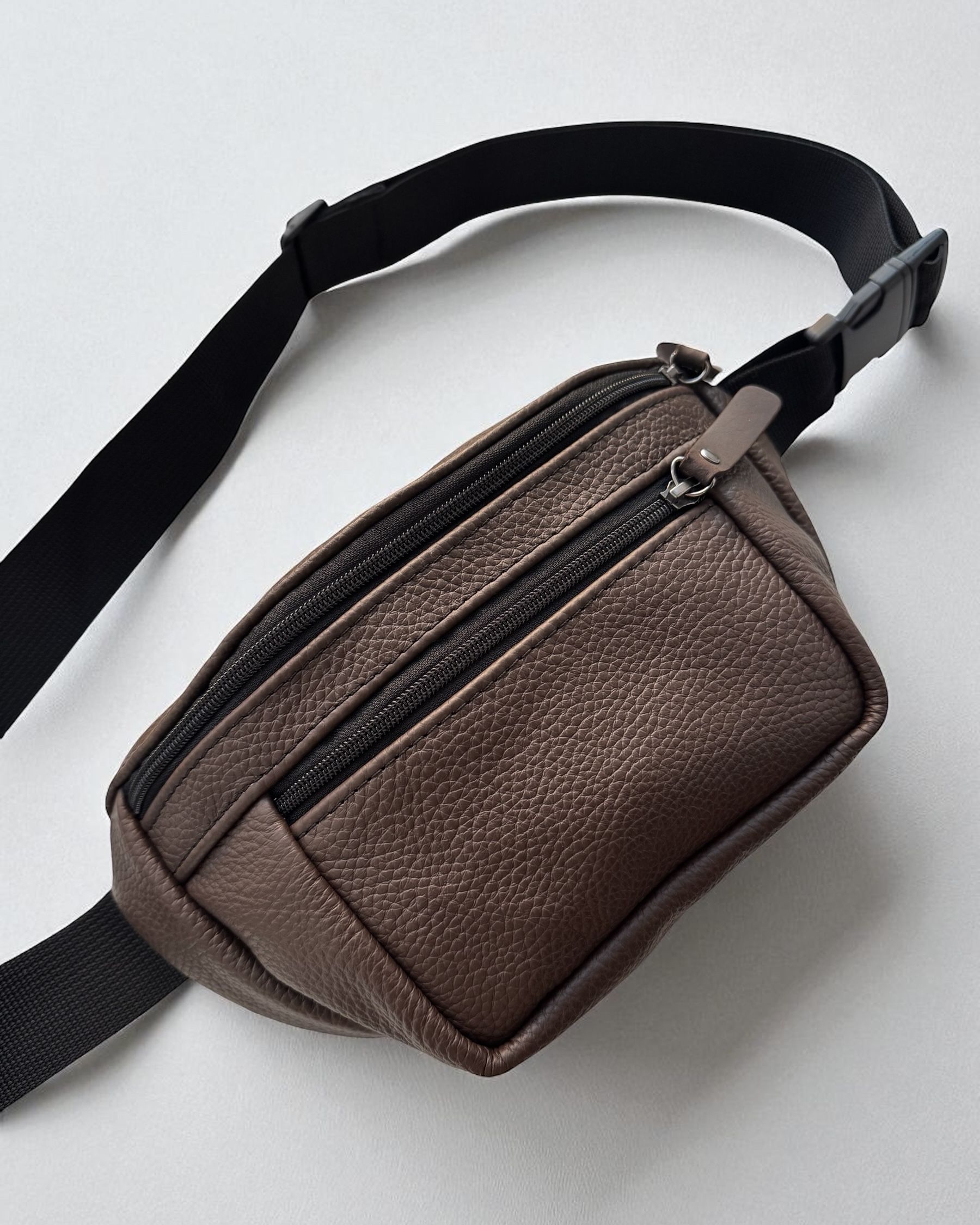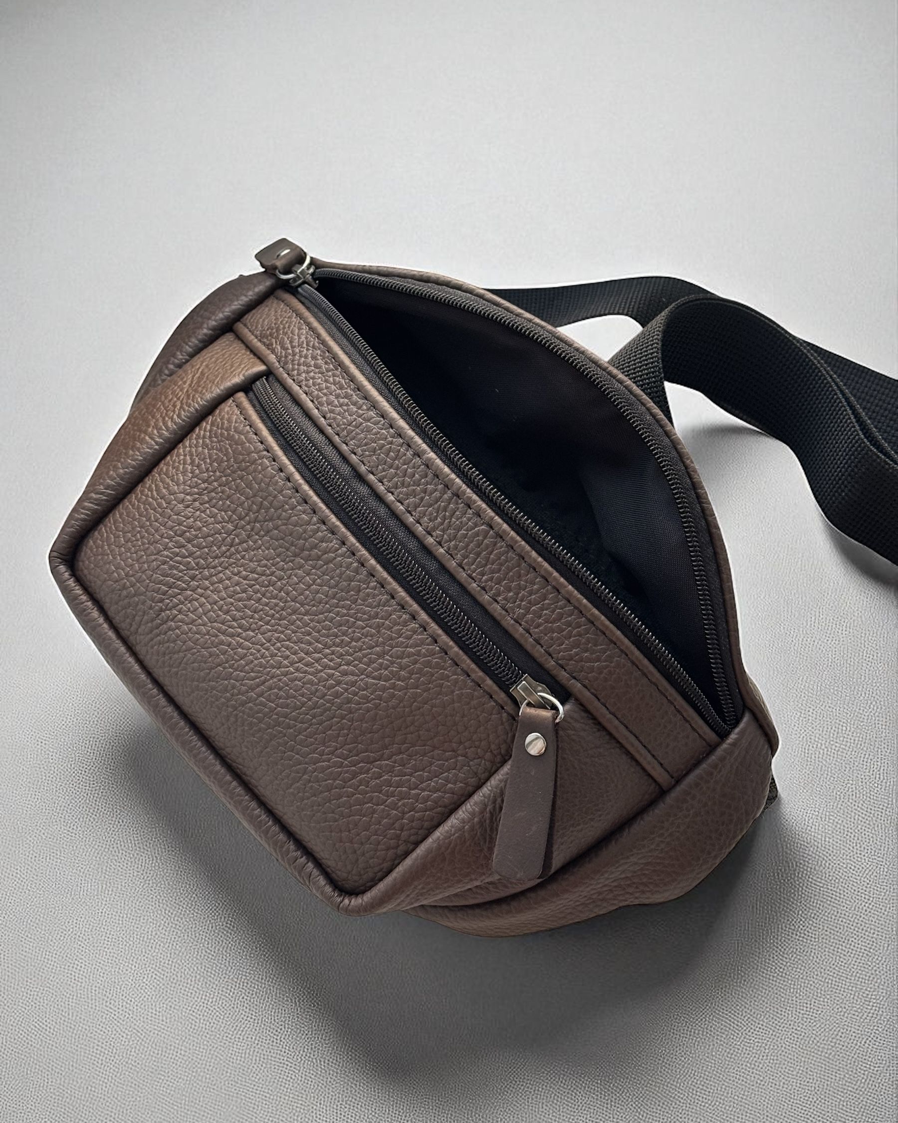 Чоловіча бананка із натуральної шкіри коричневого кольору
