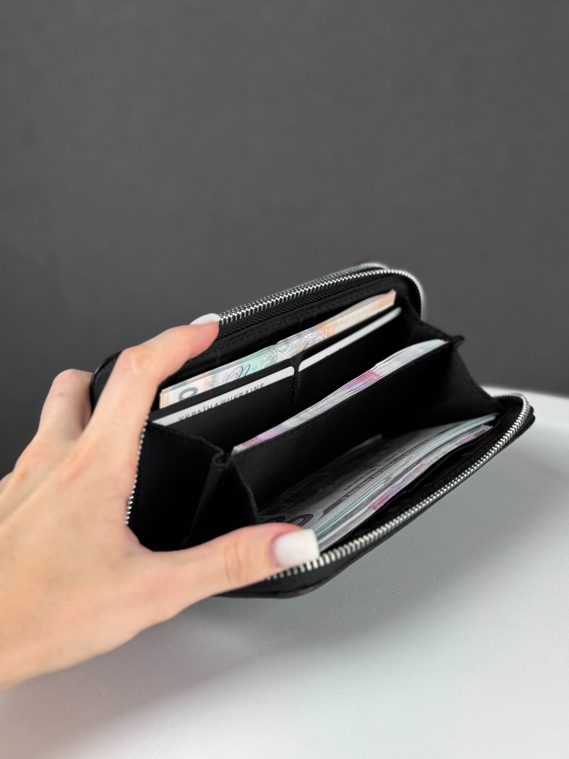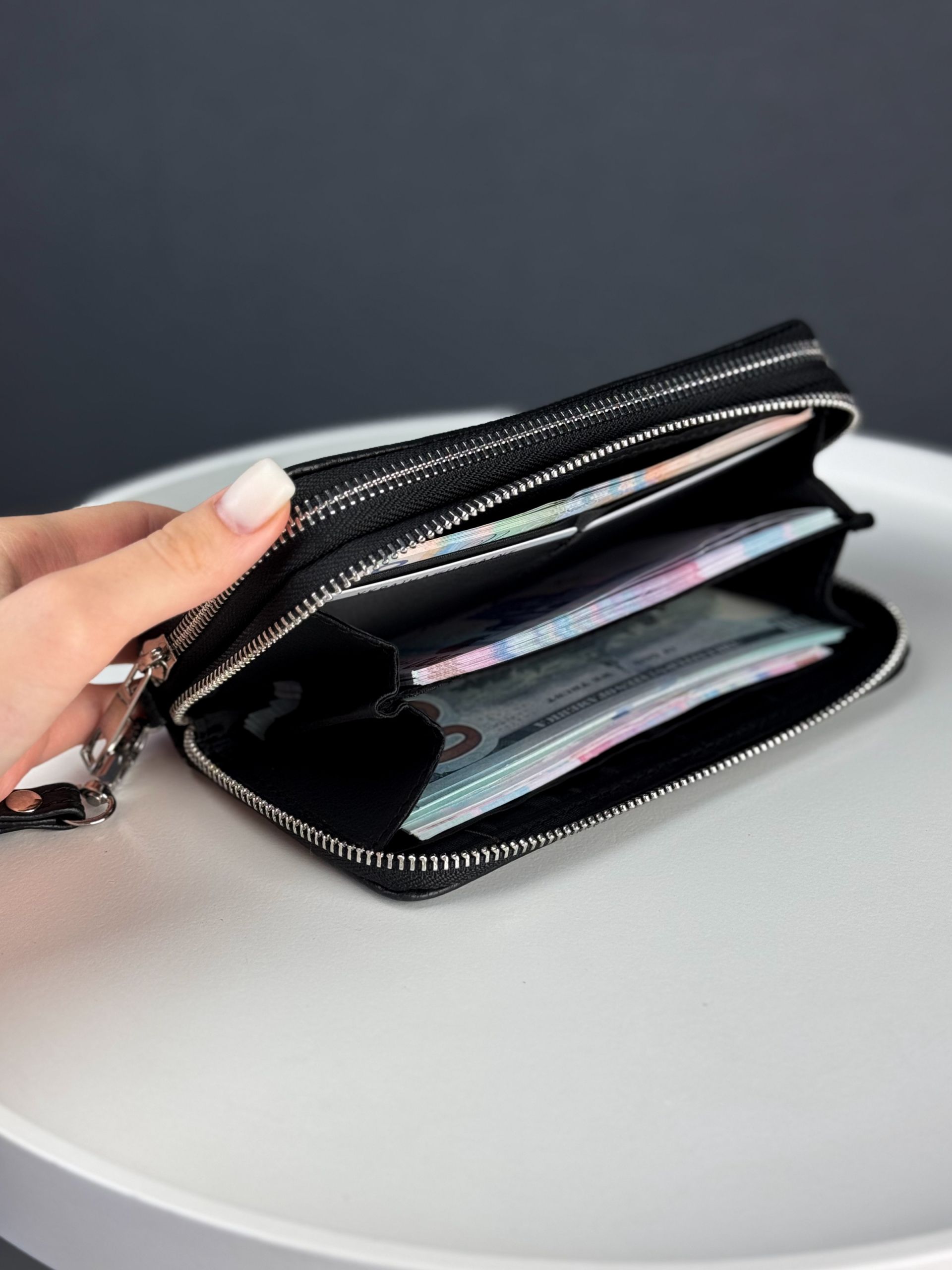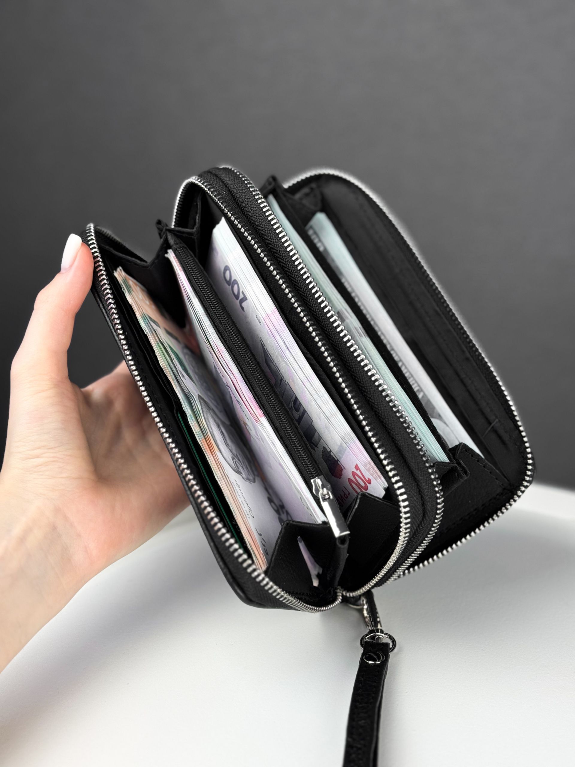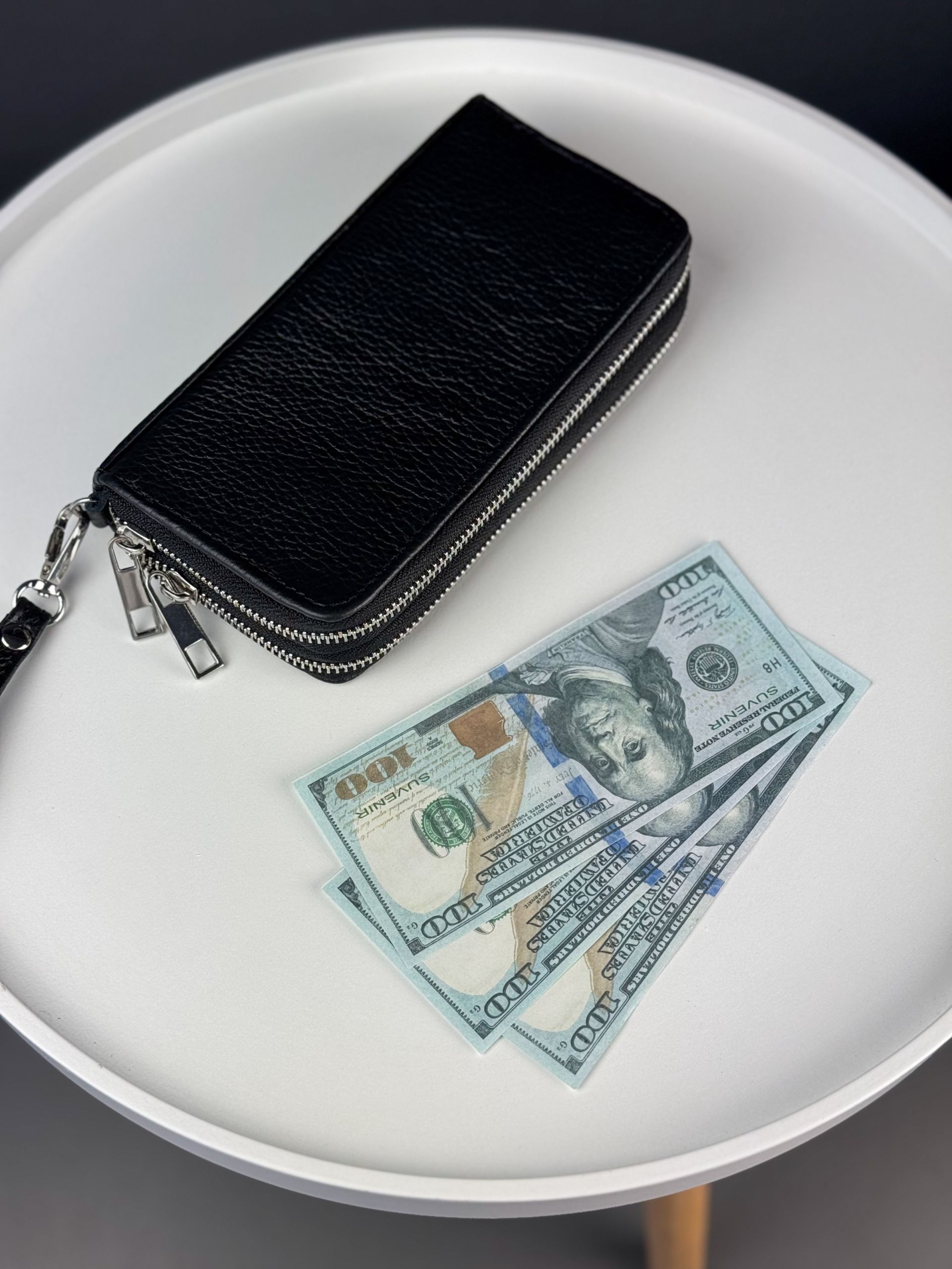 Модель виконана з високоякісної шкіри флотар, яка не боїться подряпин, зберігає форму та виглядає ефектно з часом. Усередині — все, що потрібно: зручні відділення для карток, купюр, дрібниці та документів. Завдяки продуманому дизайну гаманець легко замінить маленьку сумку — ідеально підходить як для щоденного використання, так і для виходу у світ.