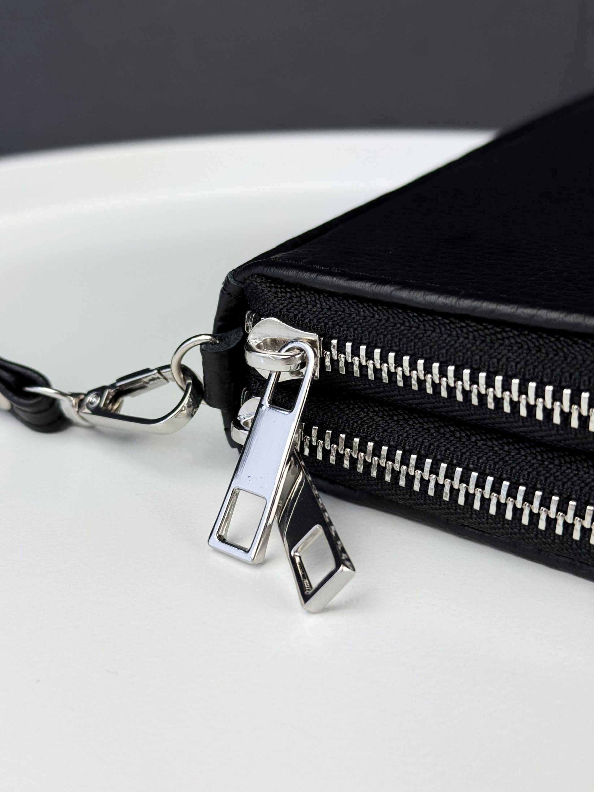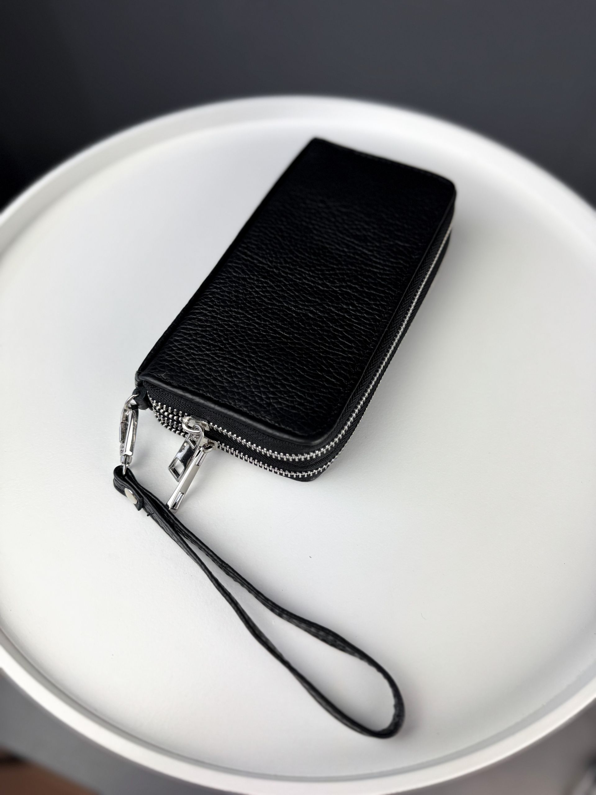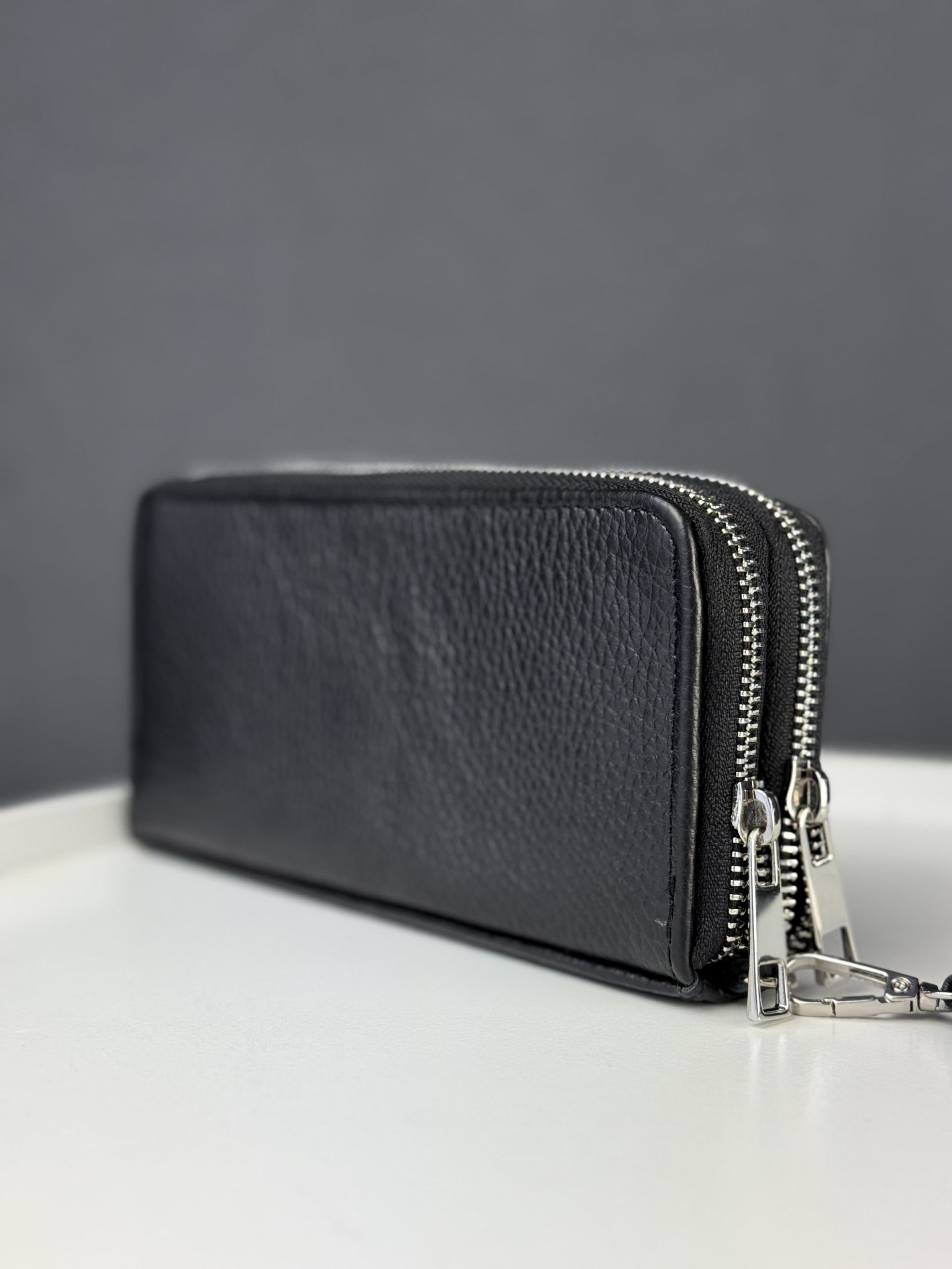 Лаконічна форма, глибока текстура та натуральна шкіра з м’яким зернистим покриттям — цей клатч-гаманець створений для тих, хто цінує естетику у простих речах.