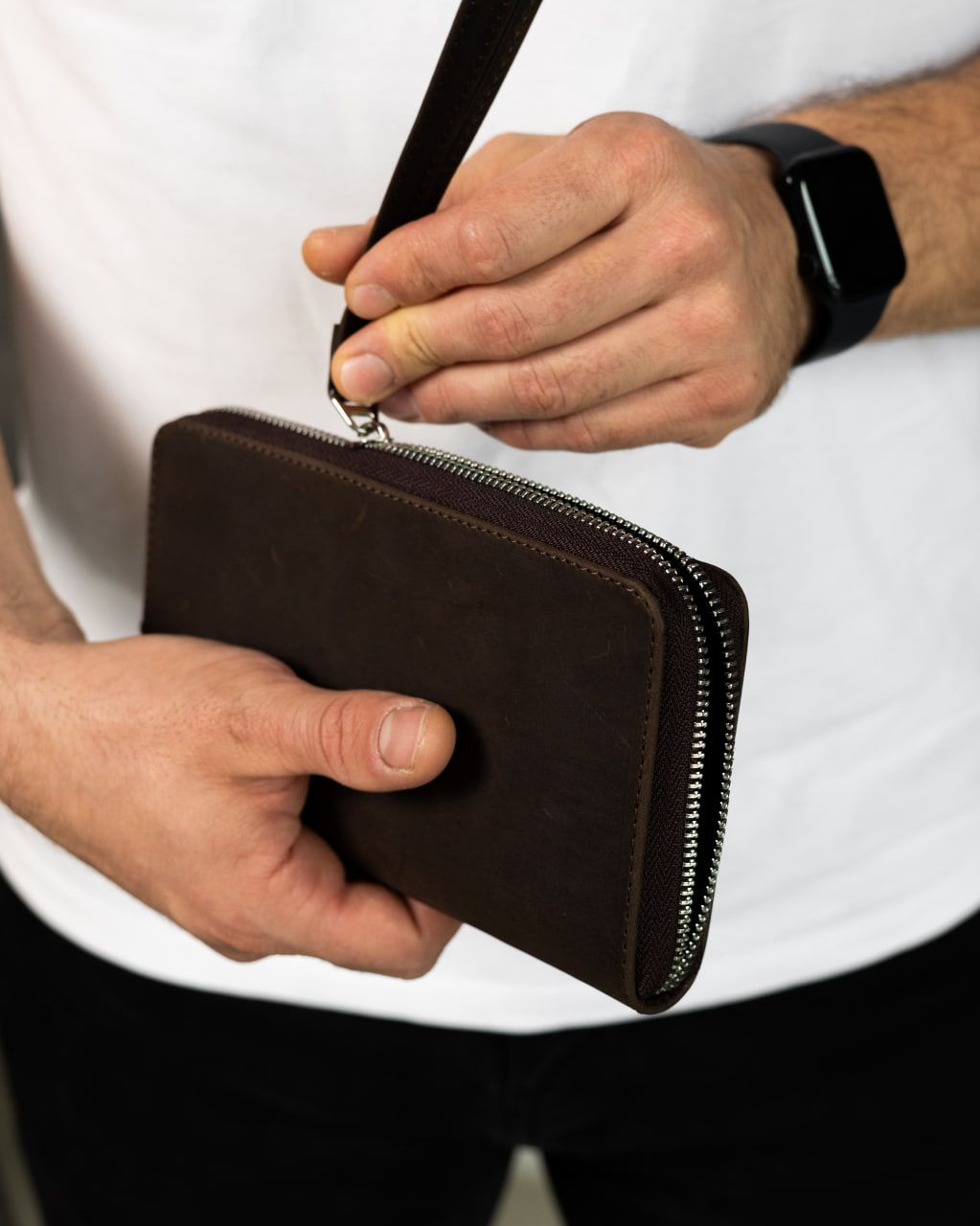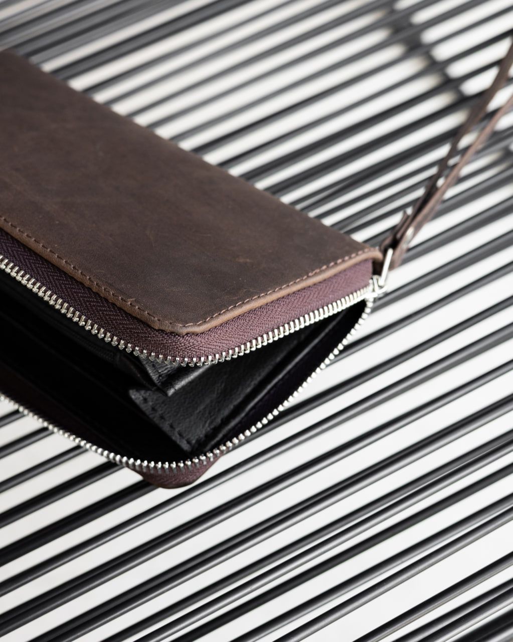 Шкіряний клатч-гаманець із натуральної шкіри Crazy Horse, коричневий