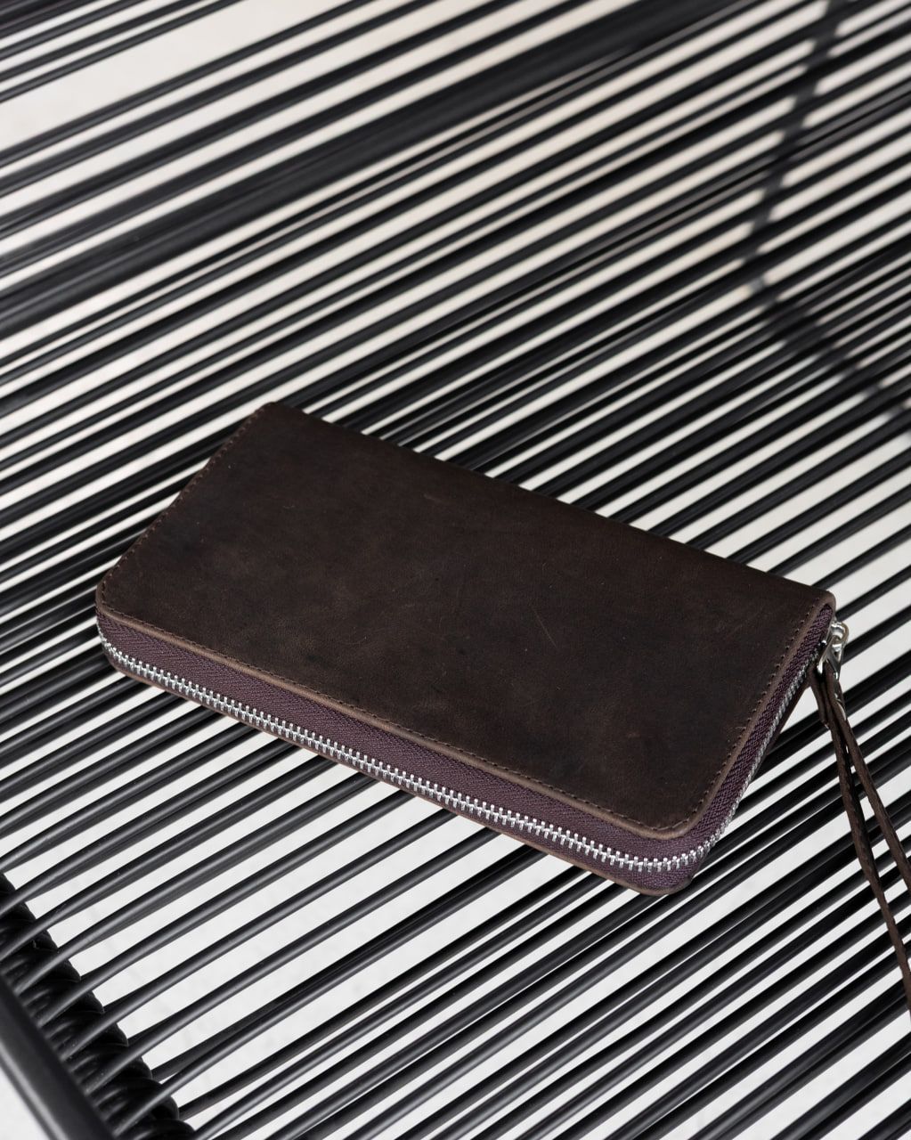 Шкіряний клатч-гаманець із натуральної шкіри Crazy Horse у коричневому кольорі – це стильний і практичний аксесуар для повсякденного використання. Завдяки міцному матеріалу, який з часом набуває унікальної фактури, гаманець виглядає солідно та вишукано. Продумане внутрішнє наповнення включає відділення для купюр, карток, дрібниці та смартфона, що робить його максимально зручним у використанні. Компактний розмір дозволяє носити його як самостійний аксесуар або легко помістити в сумку. Класичний коричневий відтінок і лаконічний дизайн роблять цей клатч універсальним вибором для будь-якого образу.