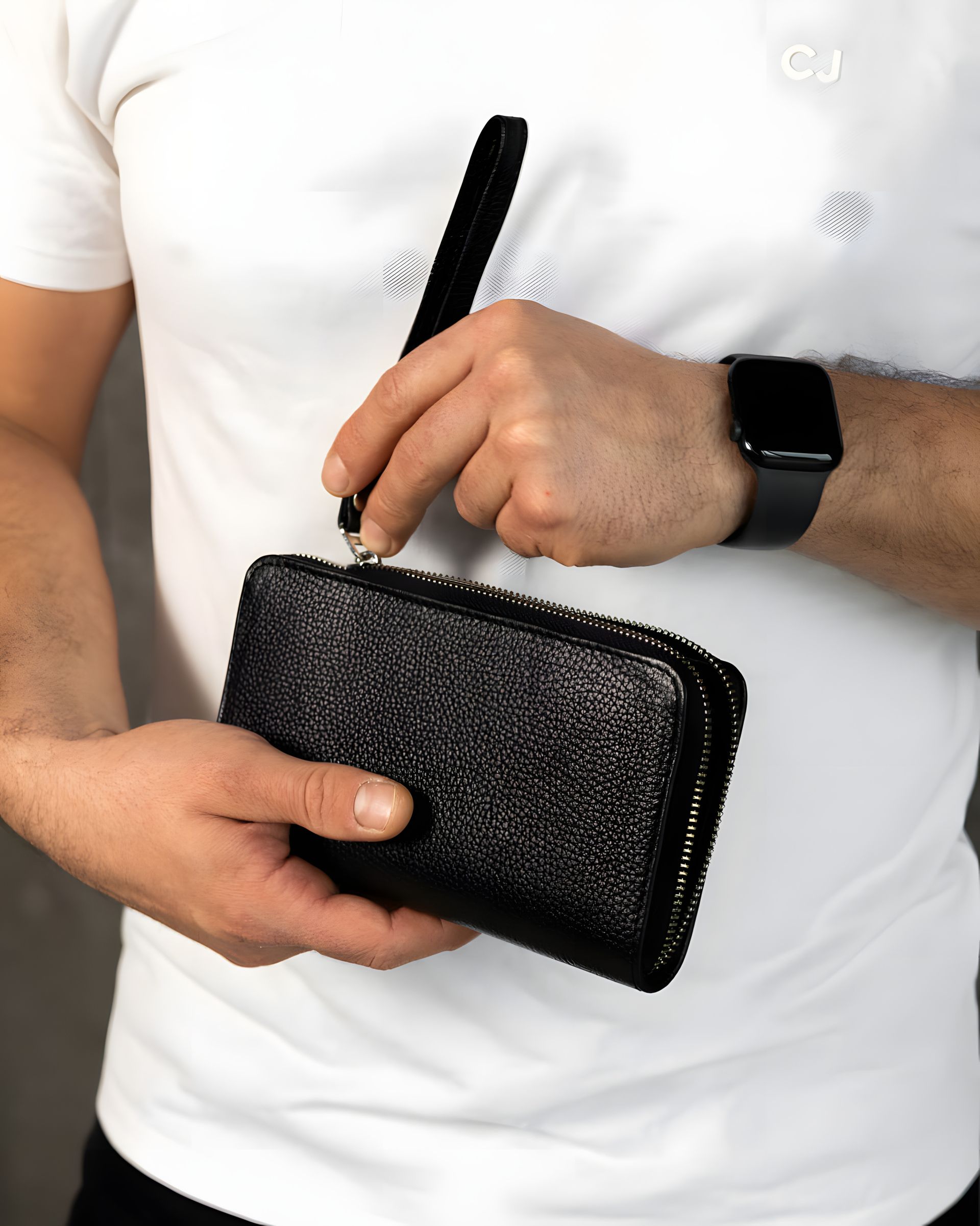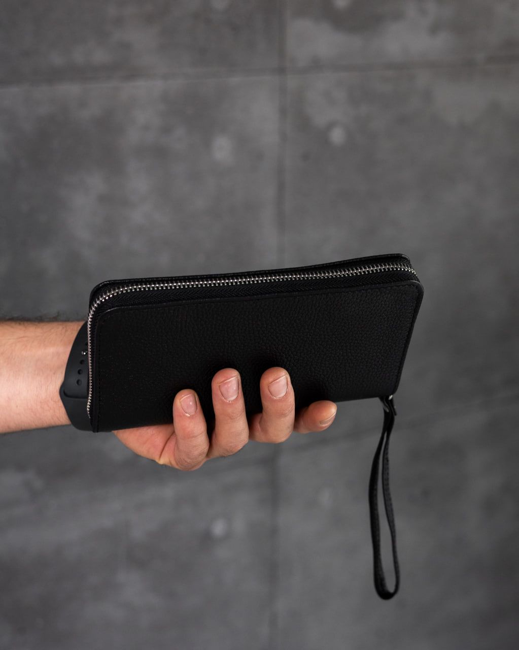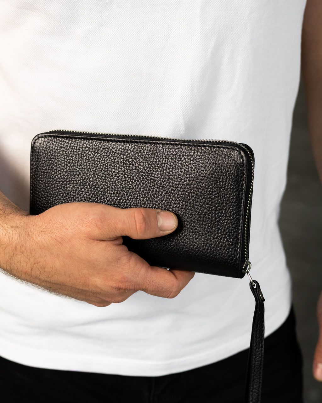 Чоловічий чорний клатч-гаманець із натуральної зернистої шкіри