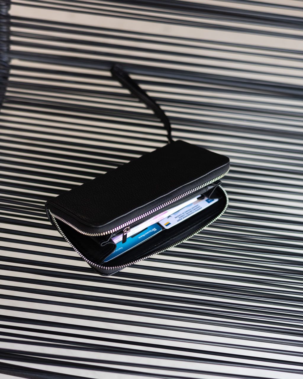 Лаконічна форма, глибока текстура та натуральна шкіра з м’яким зернистим покриттям — цей клатч-гаманець створений для тих, хто цінує естетику у простих речах.