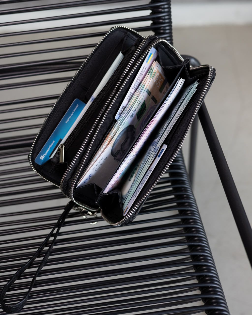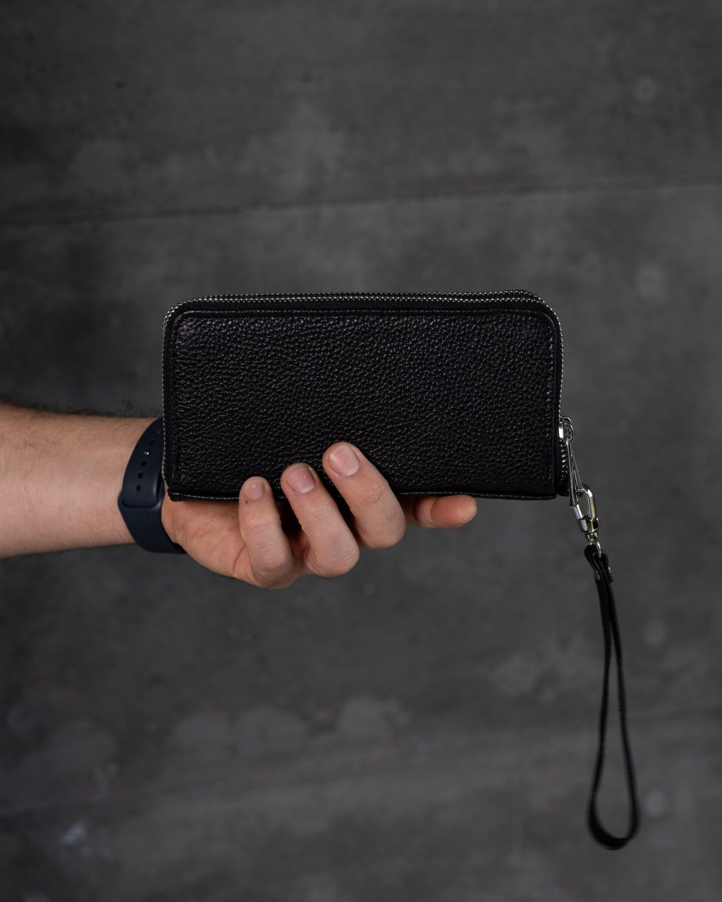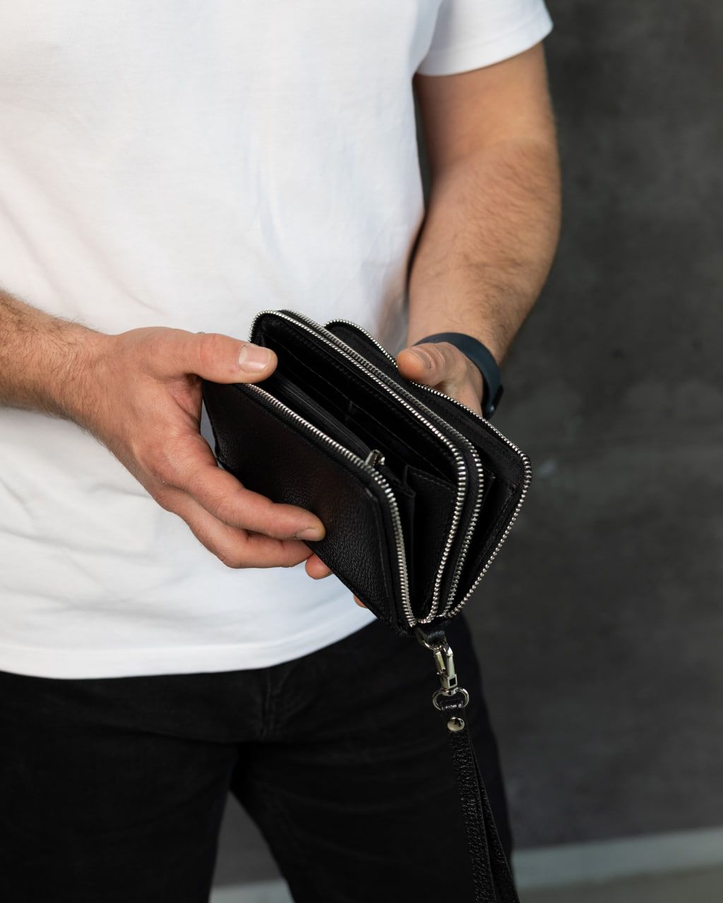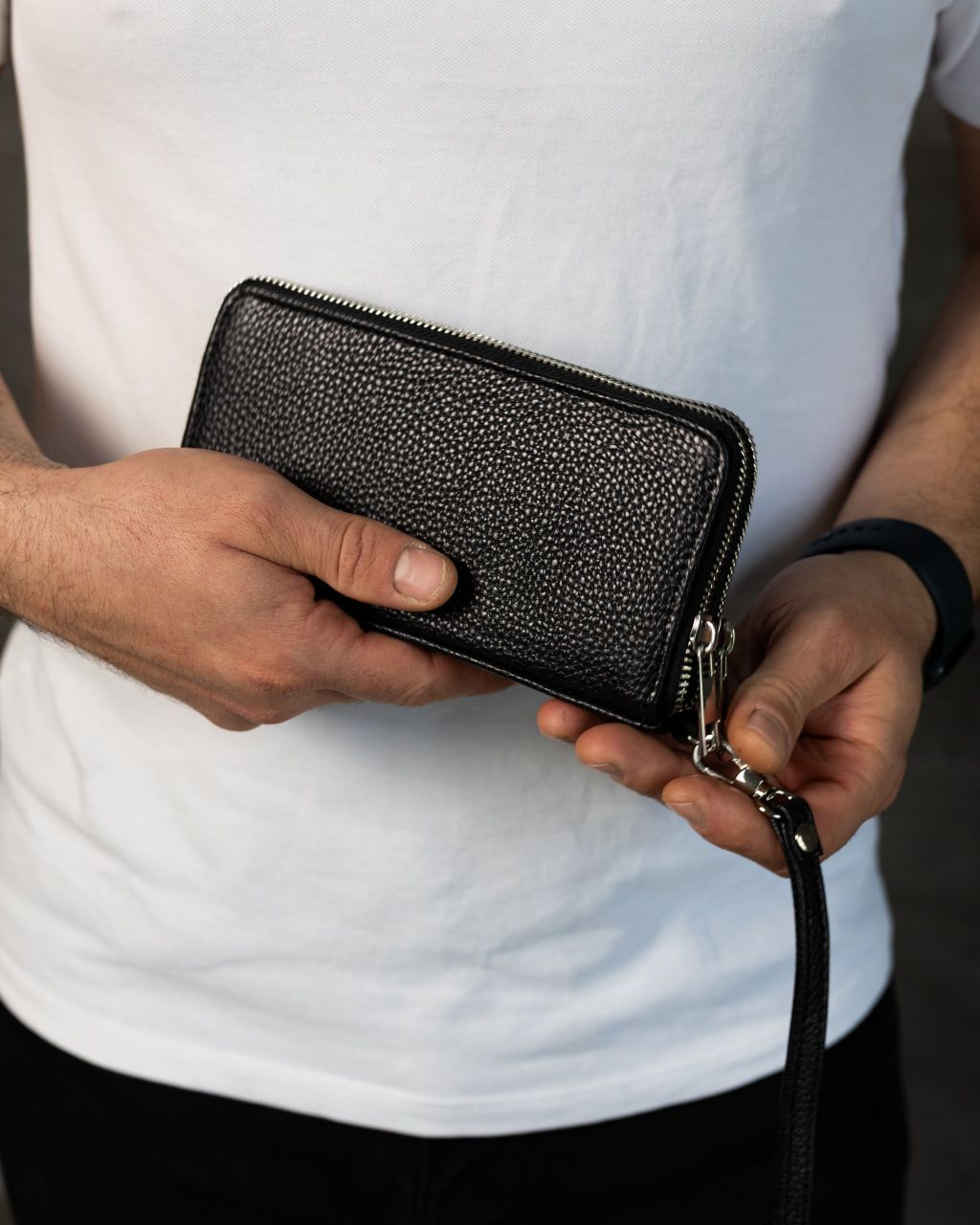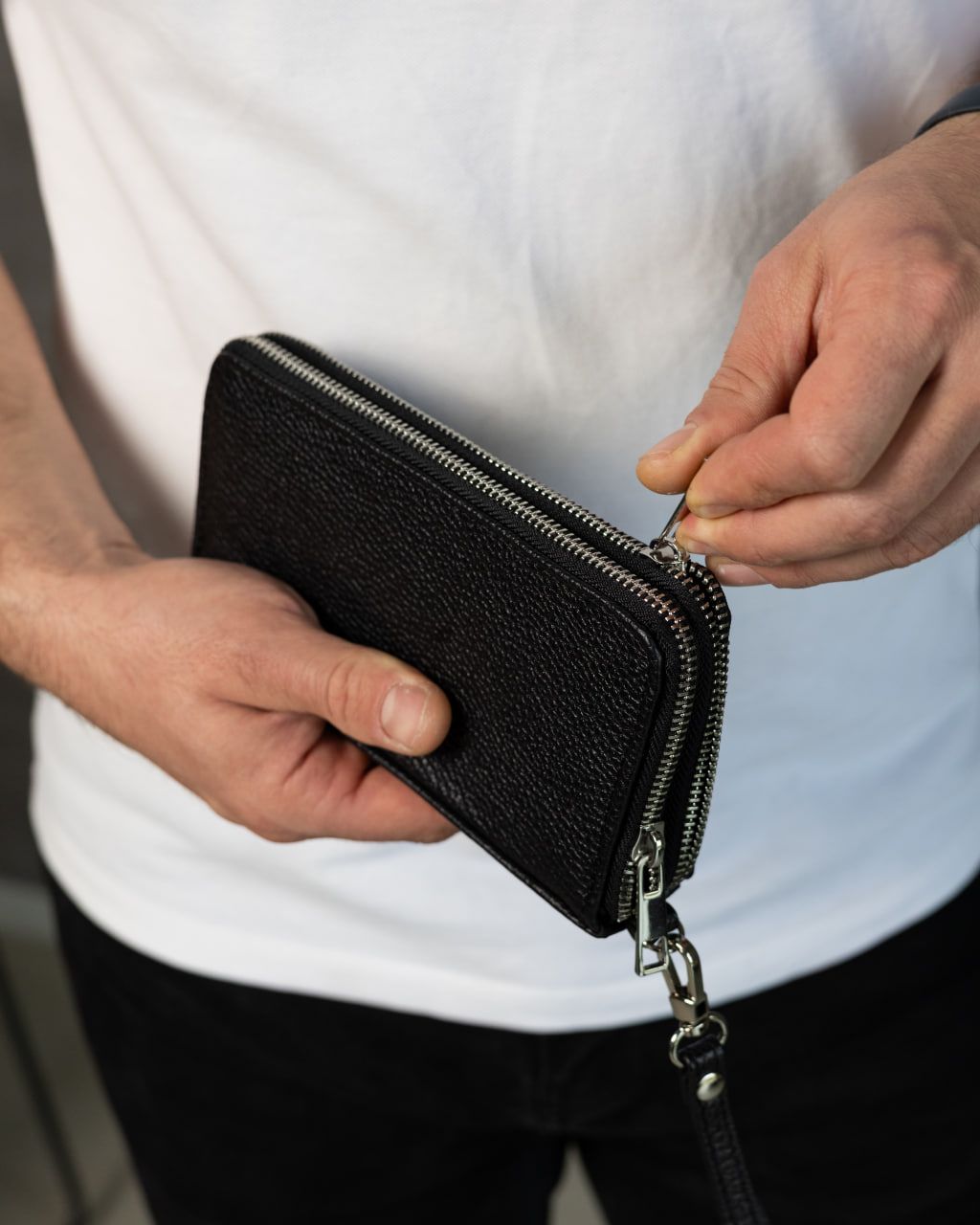 Чоловічий чорний клатч-гаманець із натуральної зернистої шкіри