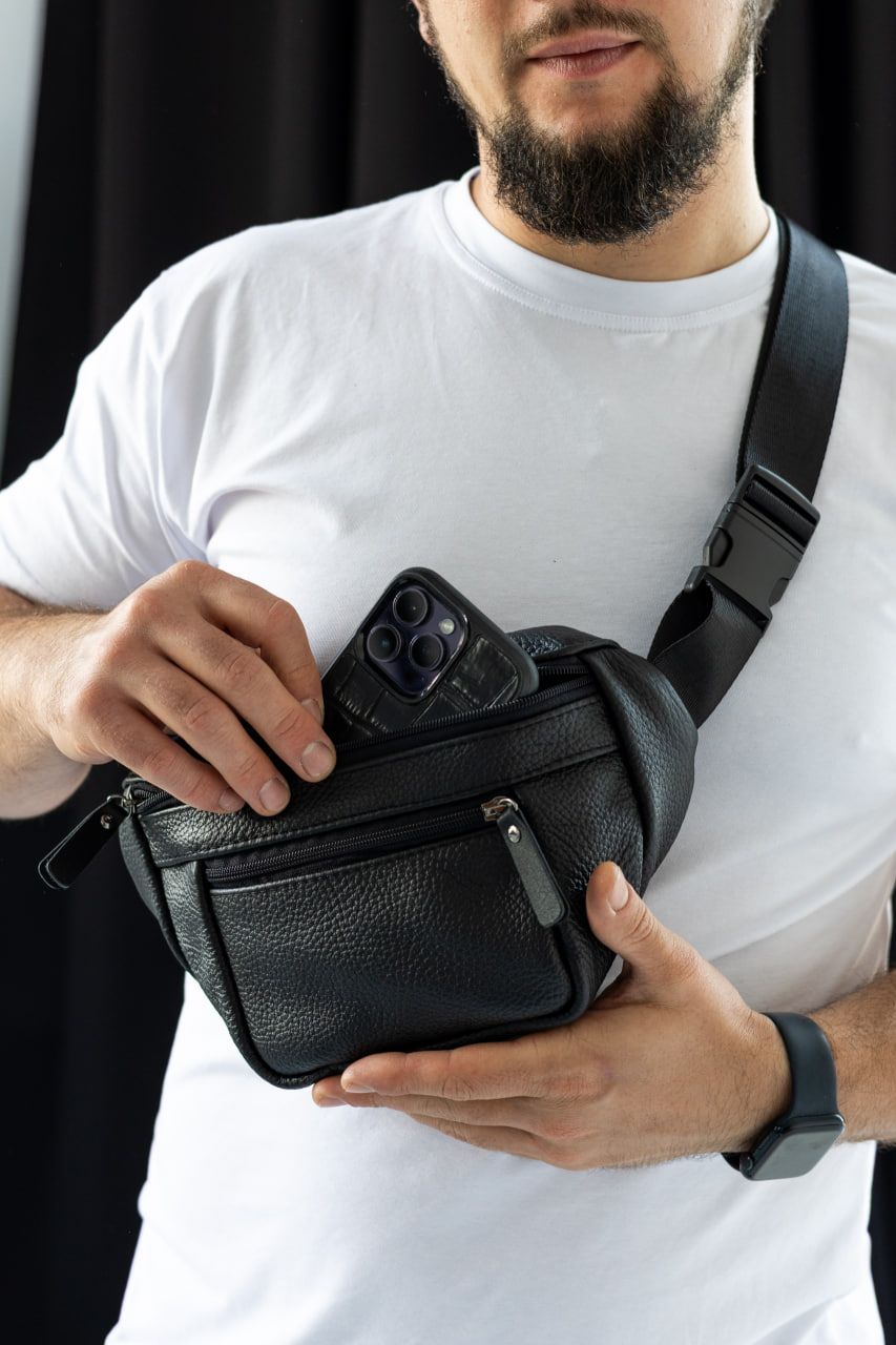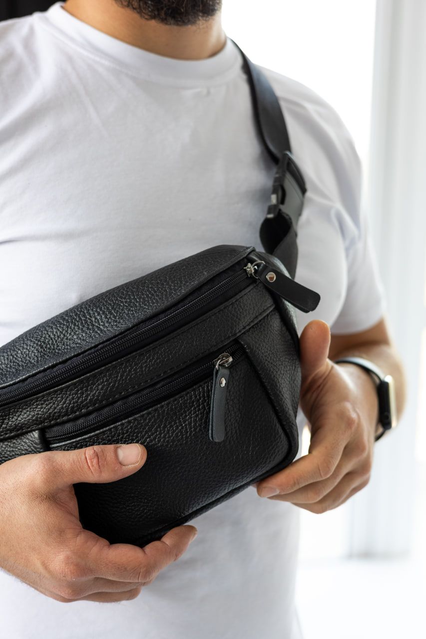 Ця стильна чоловіча поясна сумка з натуральної шкіри - ексклюзивний аксесуар, який виражає ваш смак і практичність одночасно. Виготовлена з натуральної шкіри високої якості, вона вражає своєю якістю та елегантністю.