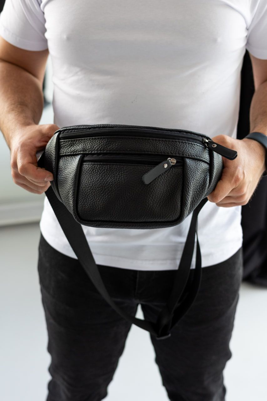 Бананка-сумка чоловіча на пояс з натуральної зернистої шкіри SKILL (чорна)