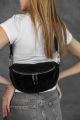 Жіноча бананка з чорної замші — це стильний і зручний аксесуар, що поєднує в собі елегантність і практичність. Виготовлена зі 100% натуральної замші, вона має м’яку, приємну на дотик текстуру та матове, глибоко чорне покриття, яке додає образу витонченості.