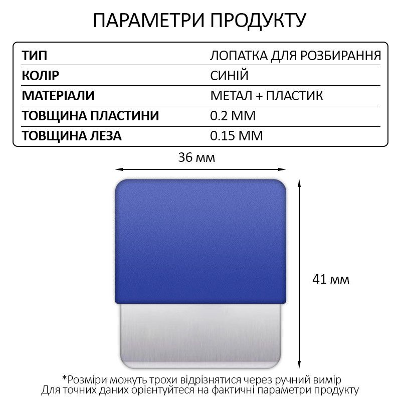 Лопатка металева TELIJIA TE-202, лезо, знімач, гнучка пластина, для розбирання, Blue