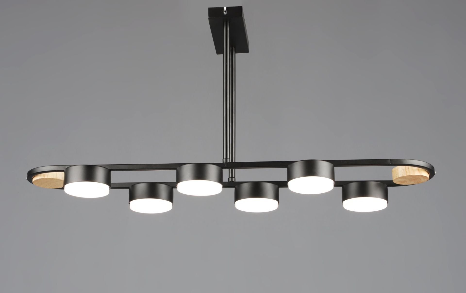 Люстра стельова світлодіодна на 6 плафонів VALESO N6720/6 GX53 Чорний + Дерево N6720/6