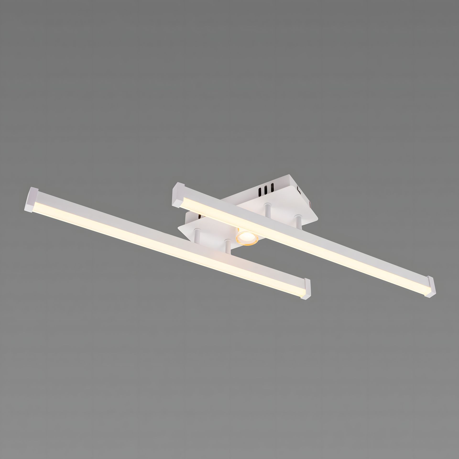 Світильник оснащений 2 вбудованими LED-модулями (загальна потужність 20W), що забезпечують потужний світловий потік 5500 люменів. Особливість моделі — можливість перемикання колірної температури: 3000K (тепле світло) та 6500K (холодне світло), що дозволяє створити потрібну атмосферу. Розмір виробу: довжина 560 мм, ширина 475 мм, висота 110 мм. Завдяки невеликій висоті, ця люстра ідеально підходить для кімнат зі стандартними або низькими стелями.