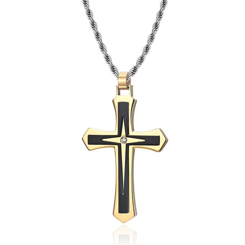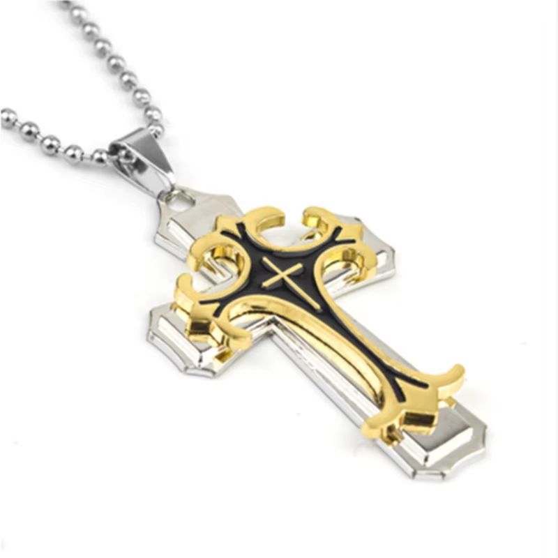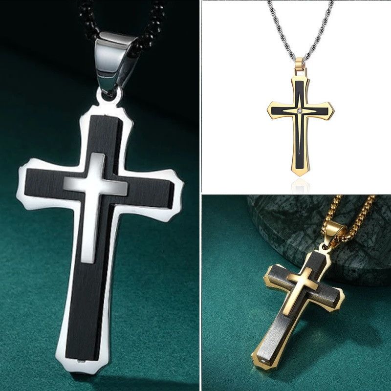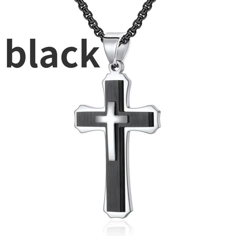 Кулон хрест із ланцюжком тришаровий 5 видів чорний із золотим срібним