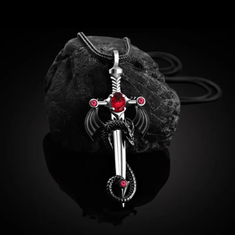 Кулон меч дракона з крилами і червоними кристалами з драконом мечем підвіска амулет