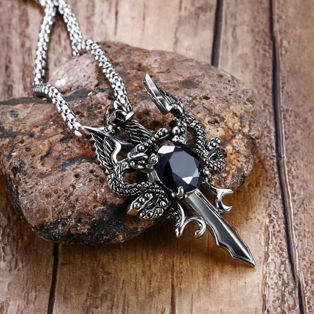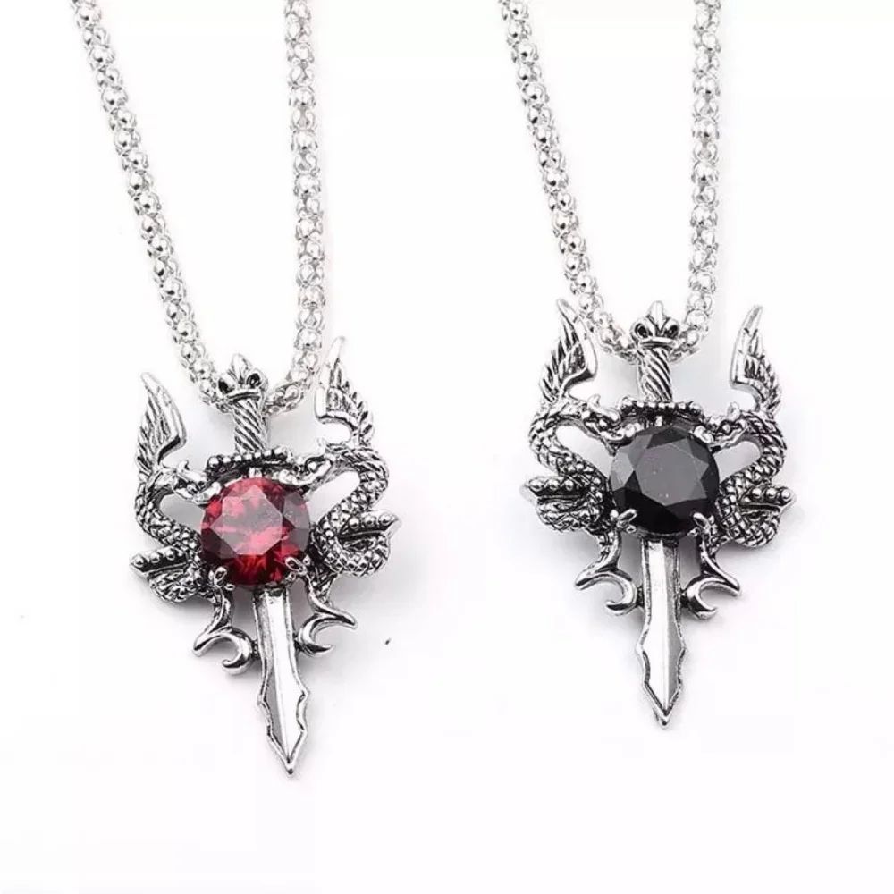 Кулон меч дракона з крилами і червоним чорним кристалами з драконом мечем підвіска амулет