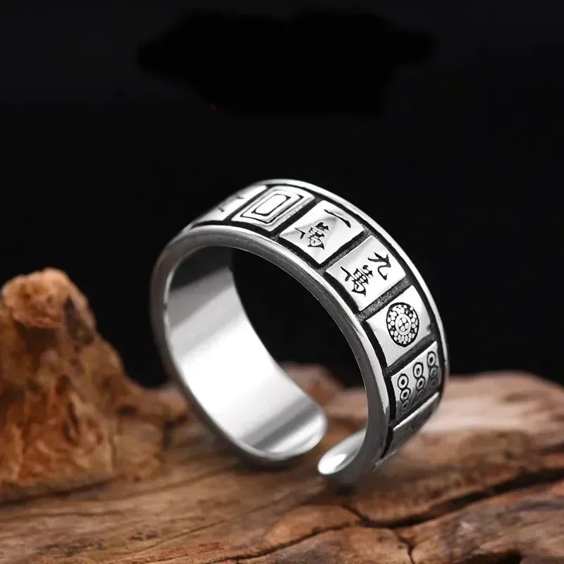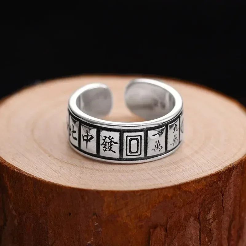 Кільце Mahjong маджонг з японськими символами ієрогліфами перстень в японському стилі