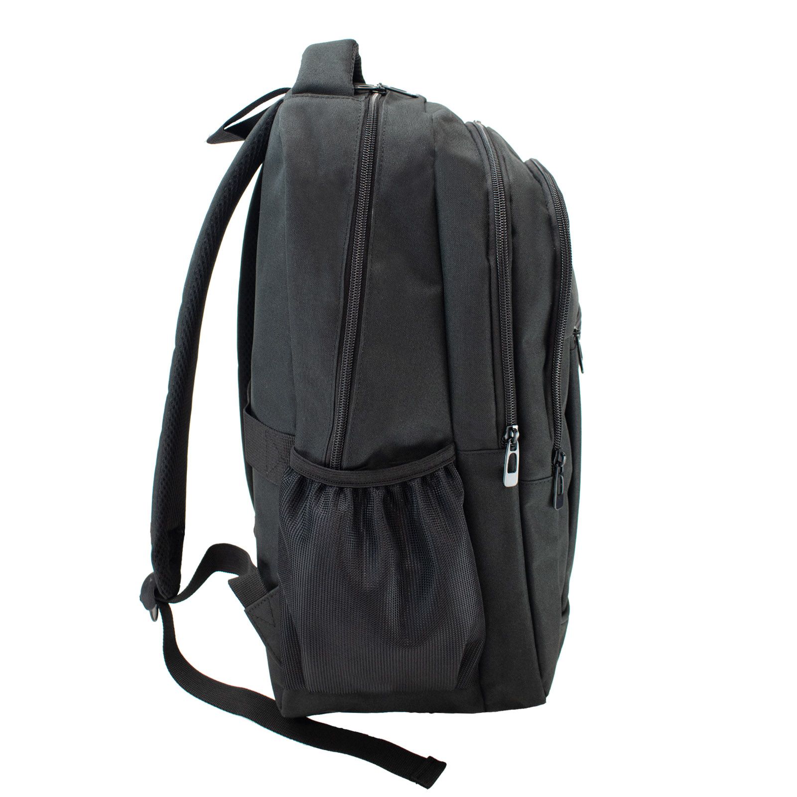 На фронтальній частині розташовані три кишені: велика на блискавці підійде для документів формату A4, середня відкрита та менша на блискавці. З обох боків є сітчасті кишені з еластичною стяжкою, які зручно використовувати для пляшки чи парасольки.