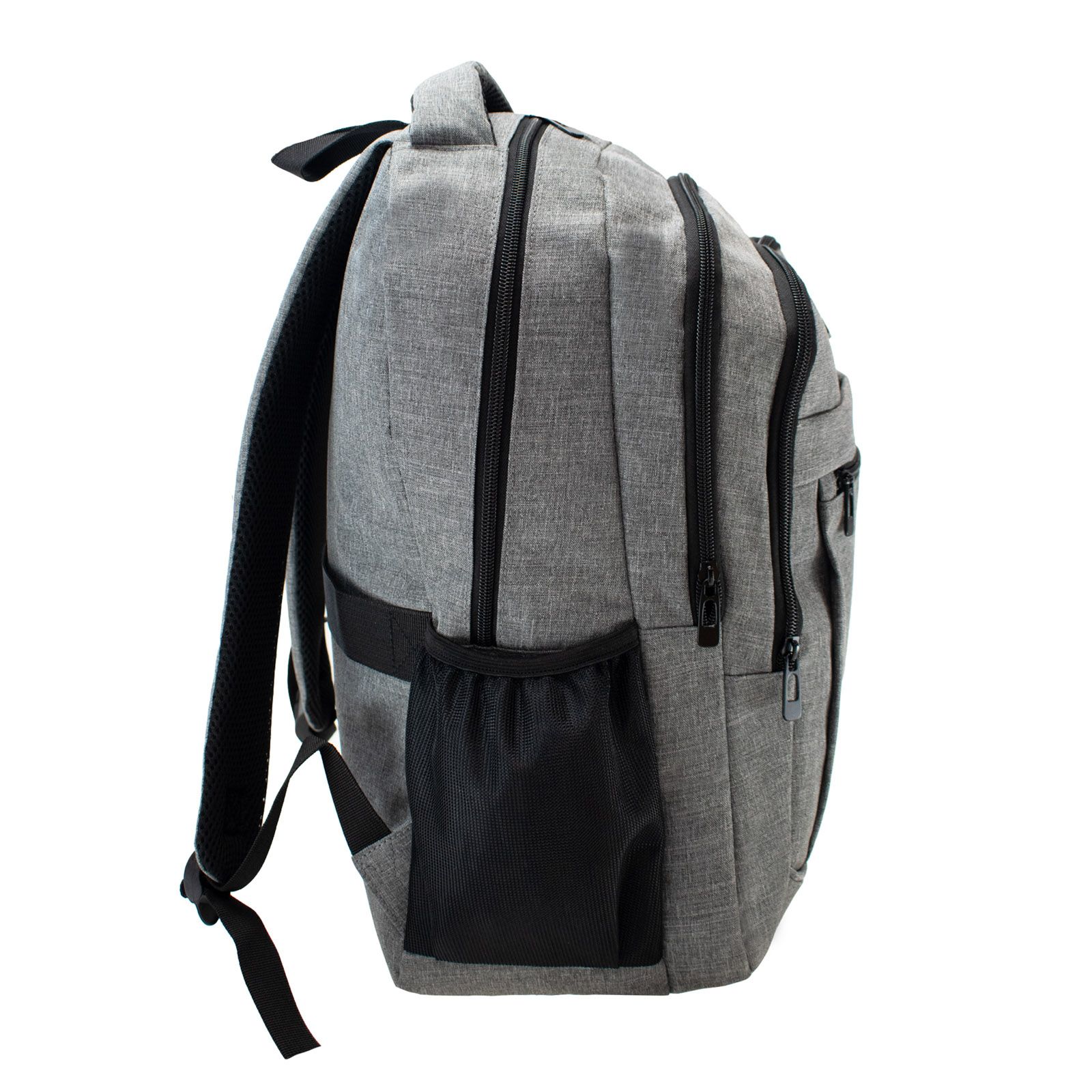 На фронтальній частині розташовані три кишені: велика на блискавці підійде для документів формату A4, середня відкрита та менша на блискавці. З обох боків є сітчасті кишені з еластичною стяжкою, які зручно використовувати для пляшки чи парасольки.