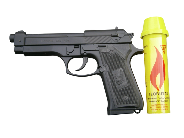 Газова турбо запальничка у вигляді пістолета Beretta M9 сувенірна + балон газу 80 мл