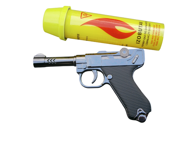 Запальничка пістолет міні Luger Parabellum "Люгер Парабелум" турбо газова + балон газу