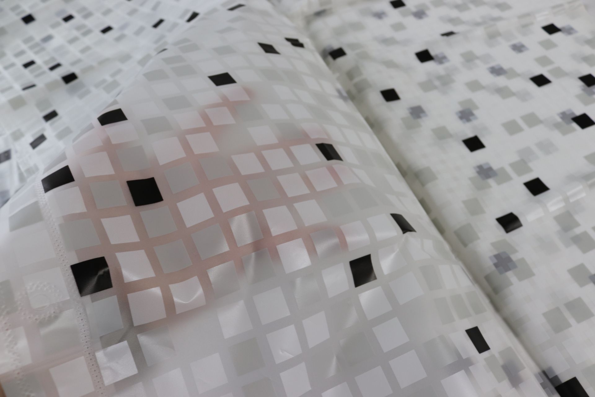 Силіконова штору для ванної, розмір 180*180 см. Водонепроникна, без запаху, проста у догляді. По верхньому краю подвійний загин із отворами для кілець. Кільця у комплекті.