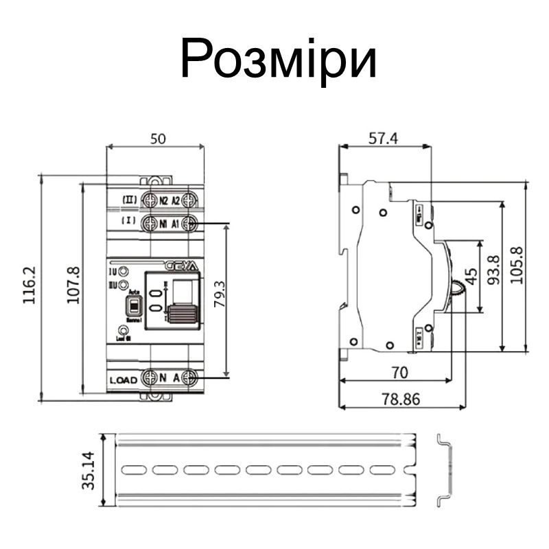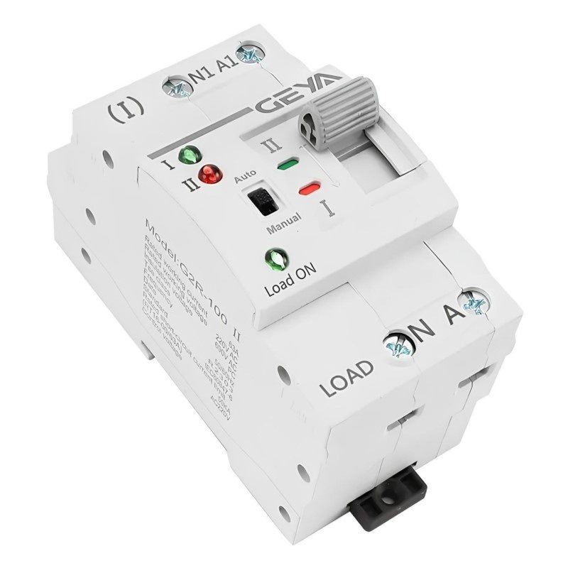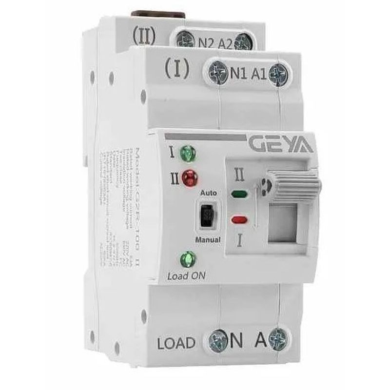 Автомат введення резерву (АВР) GEYA G2R-63 2P 63А 2 полюсний 1 фаза + нуль – це автоматичний перемикач між основною мережею електроживлення і резервною (інвертор, генератор, ecoflow і т.д.). Це компактний автомат введення резерву, шириною 5 см, займає лише 3 модулі та монтується на стандартну DIN рейку.