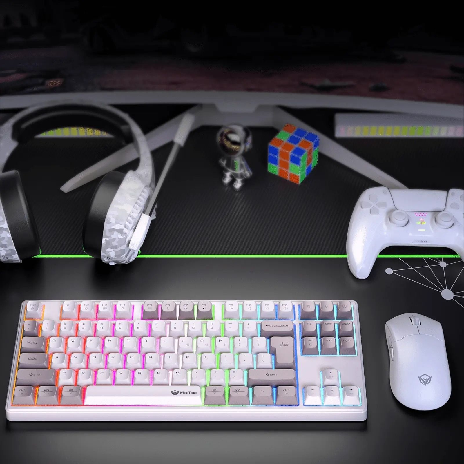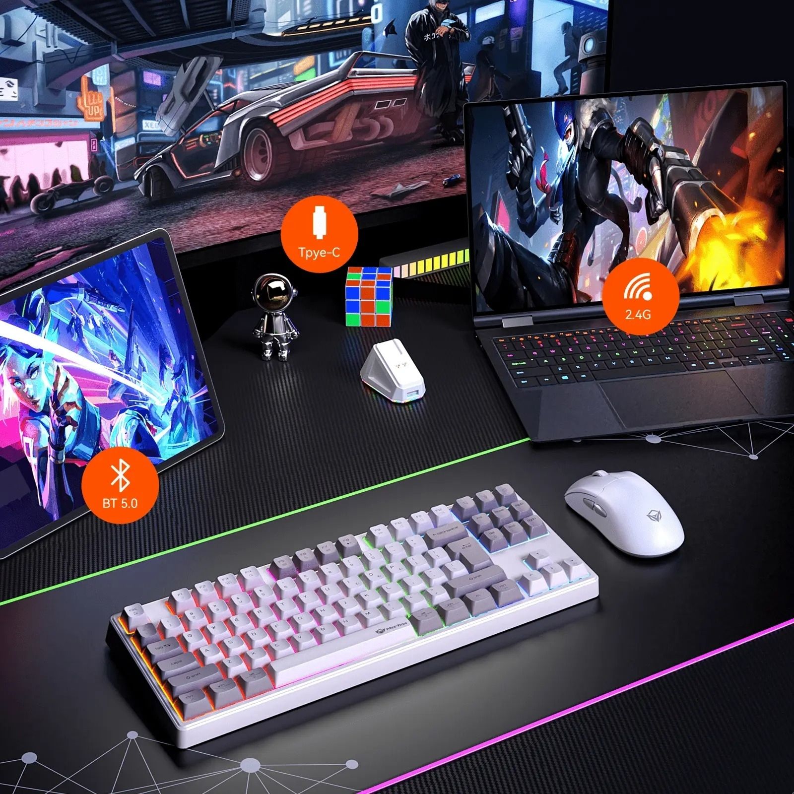 Ігрова клавіатура Meetion Tri-Mode RGB Backlit Mechanical Keyboard MK14, BT5.0, 2.4G, Wired, 4000mAh, 20h, white