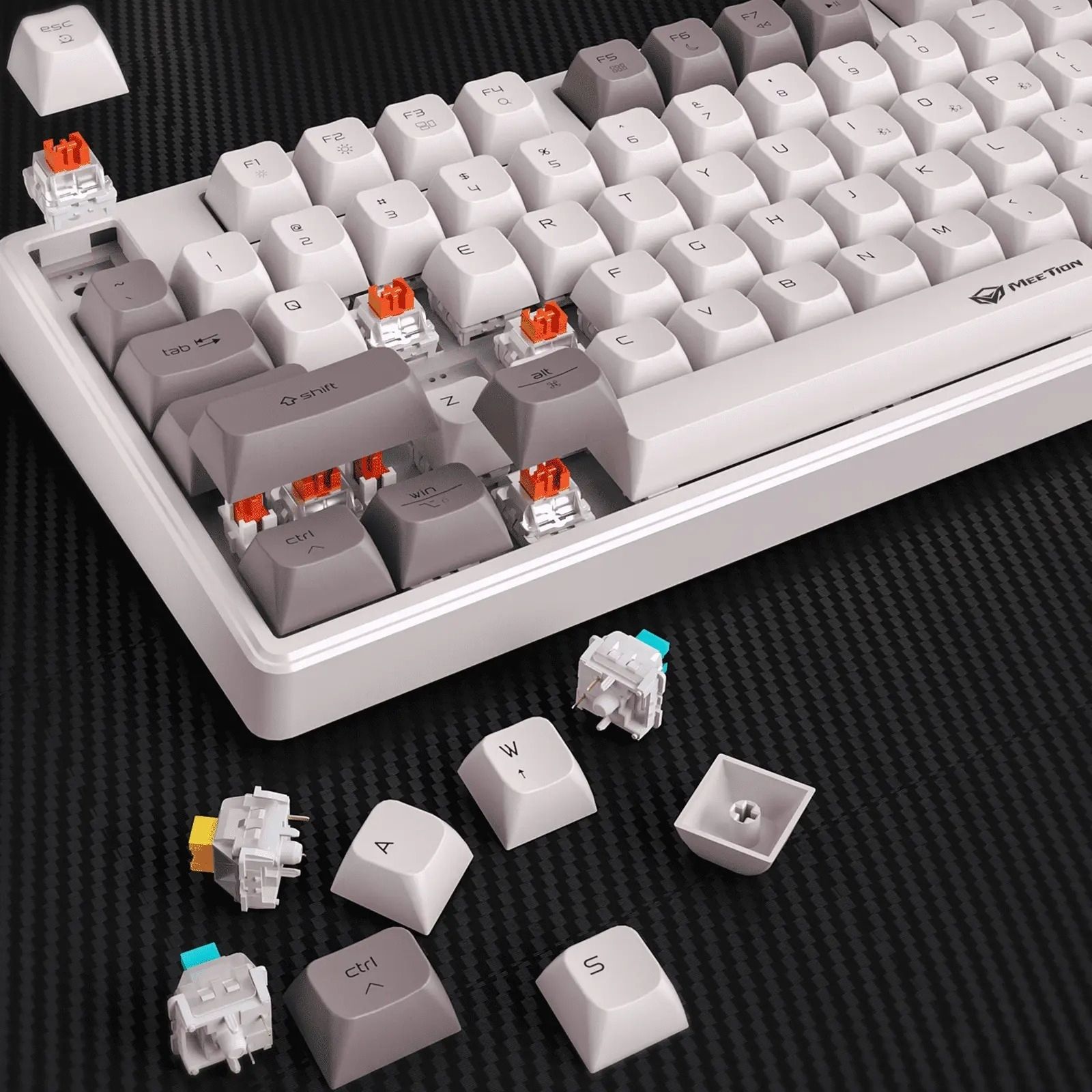 Meetion MT-MK14 — це компактна механічна клавіатура формату TKL (87 клавіш), що поєднує універсальність, високу якість збірки та широкі можливості кастомізації. Модель підтримує три режими підключення, оснащена гарячою заміною перемикачів (hot-swap), яскравим RGB-підсвічуванням і ємним акумулятором, що робить її відмінним вибором як для ігор, так і для роботи.