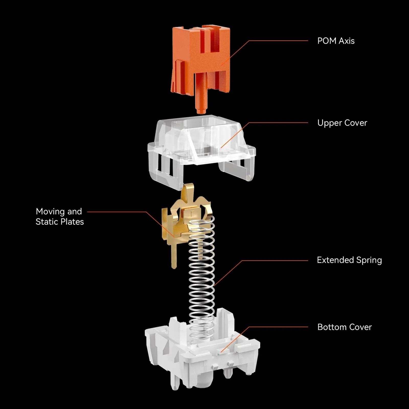 - Внутрішнє шумопоглинаюче наповнення з EVA-матеріалу та верхній монтаж знижують резонанс, роблячи звук натискань більш м'яким та приємним.