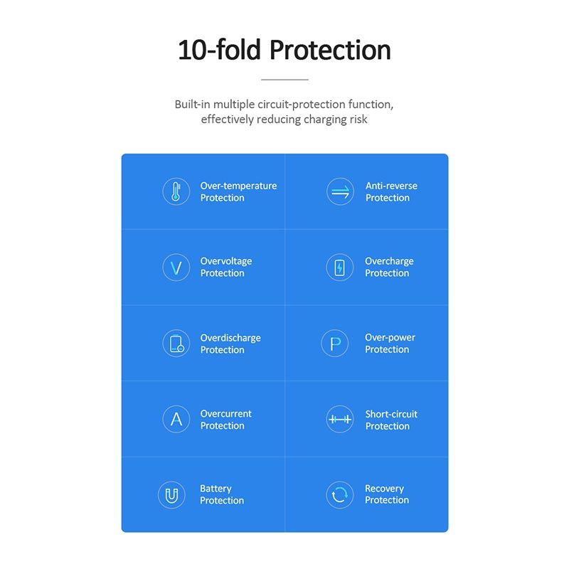 - Інтелектуальний чіп розпізнає тип пристрою та автоматично підбирає оптимальну потужність, забезпечуючи безпечну та ефективну зарядку.