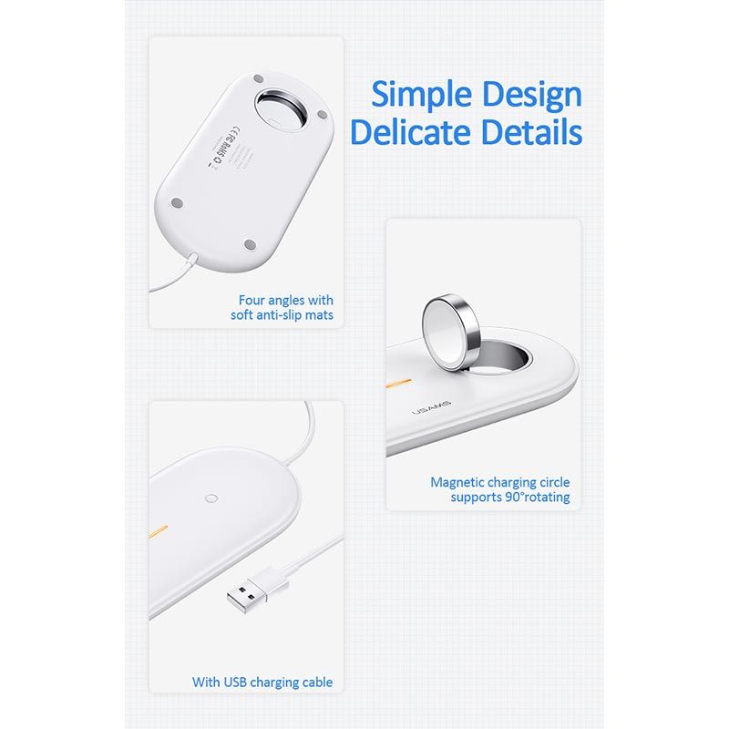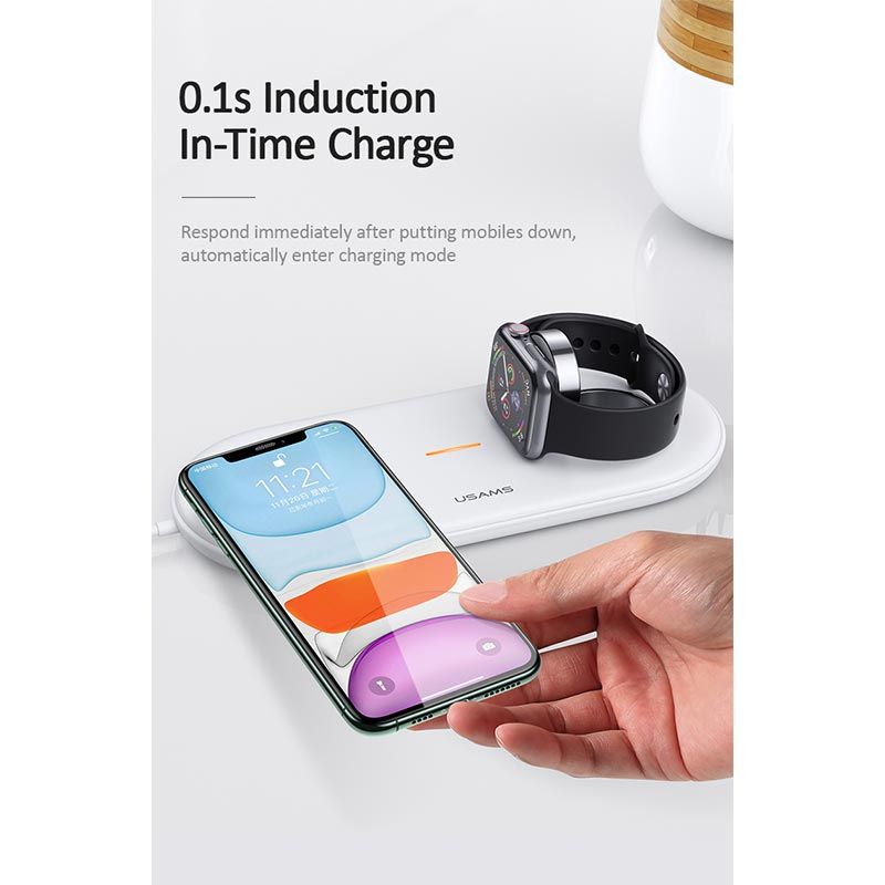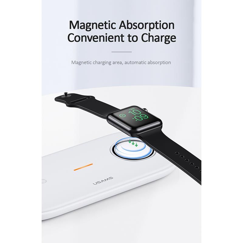 Зарядний пристрій Qi USAMS 2IN1 Wireless Charger With Cable для Apple Watch & Mobiles US-CD119, 2A, 2W, 10W, white