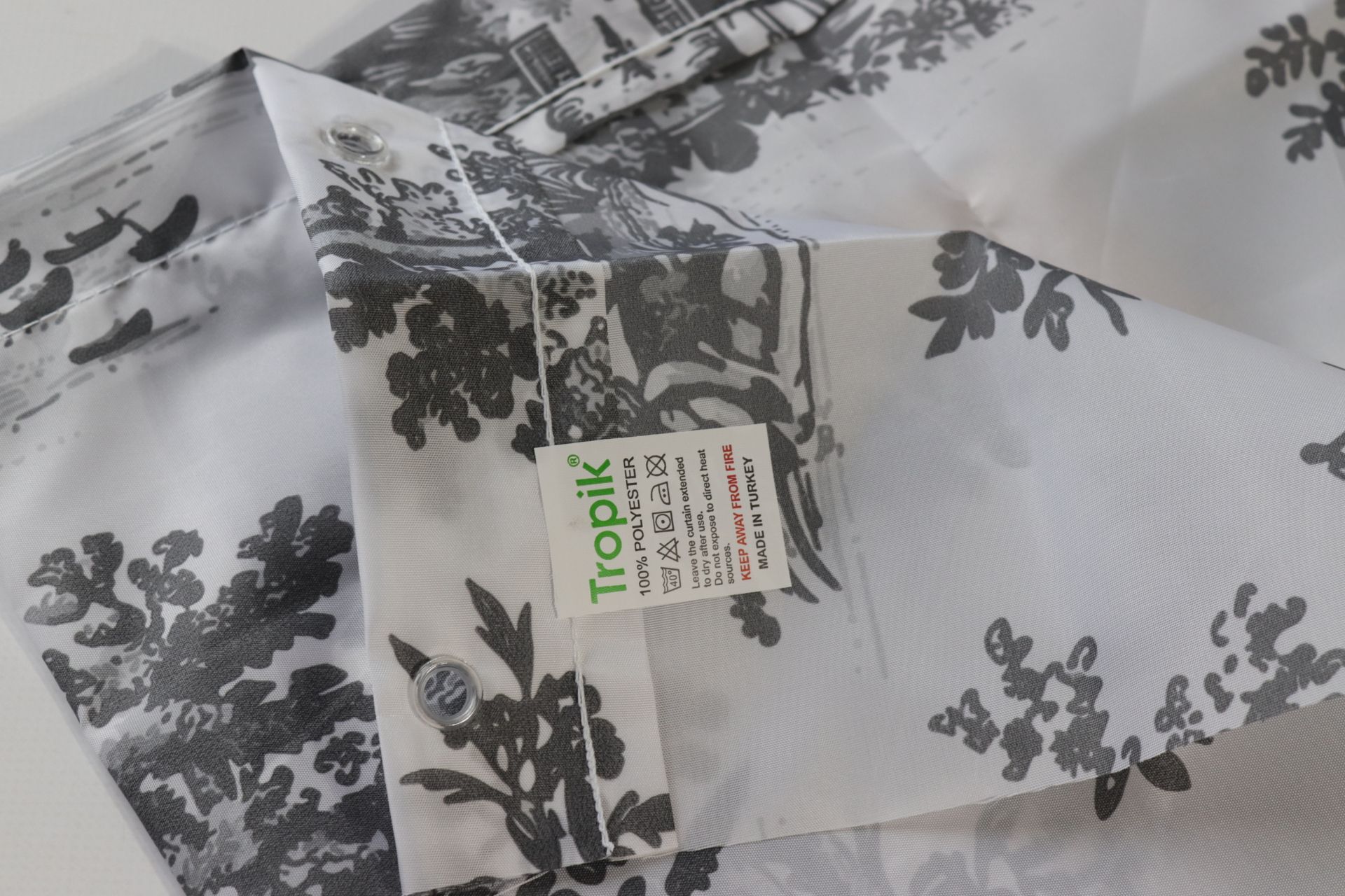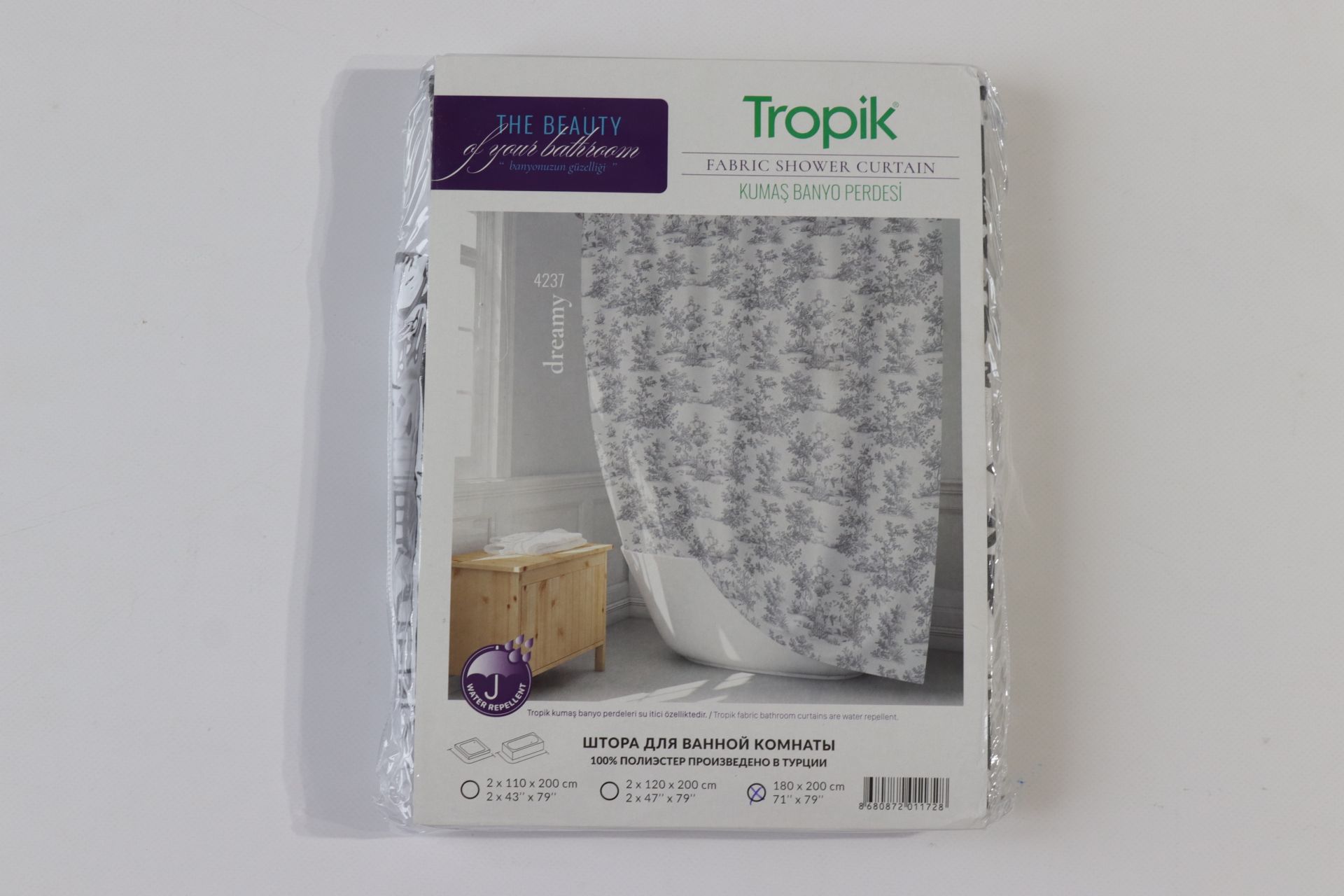 Штора для ванної Tropic виробництва Туреччини. Штора тканинна з водовідштовхувальним просоченням, швидко сохне, а значить у ванній кімнаті не буде вогкості й грибка. Проста у догляді, можна прати в пральній машині та прасувати. Забарвлення яскраве й оригінальне. Зносостійка, не деформується з часом, малюнок не блякне. По верхньому краю подвійний загин з отворами для кілець. Отвори оброблені пластиком. Кілець в комплекті немає. Їх можна придбати додатково.