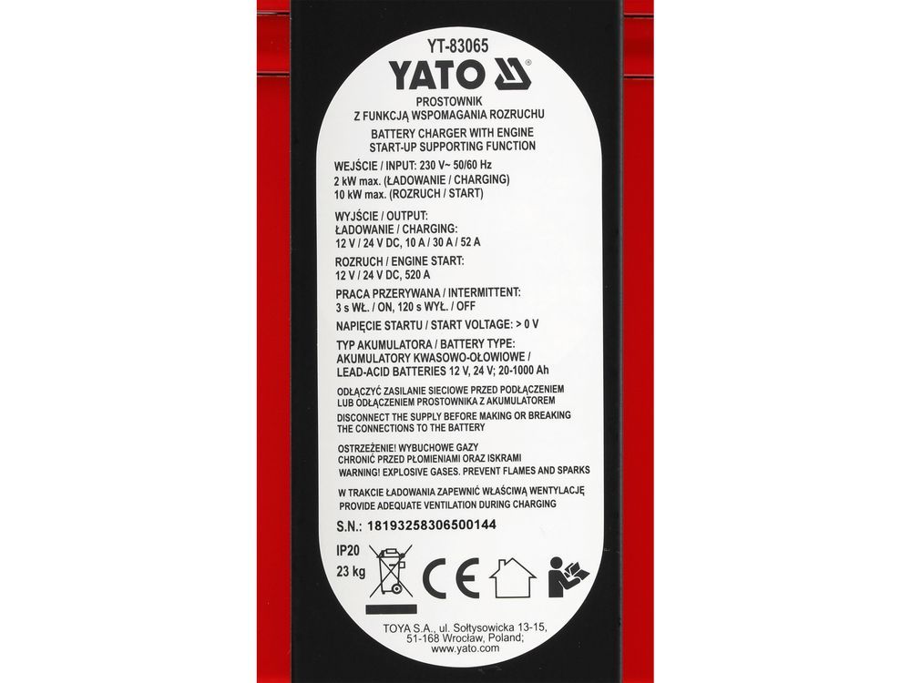 - режим запуску – 12 В/24 В, струм 520 А (періодичний режим роботи – 3 с увімкнено, 120 с вимкнено) – функція швидкого запуску двигуна, ефективна навіть за низьких температур