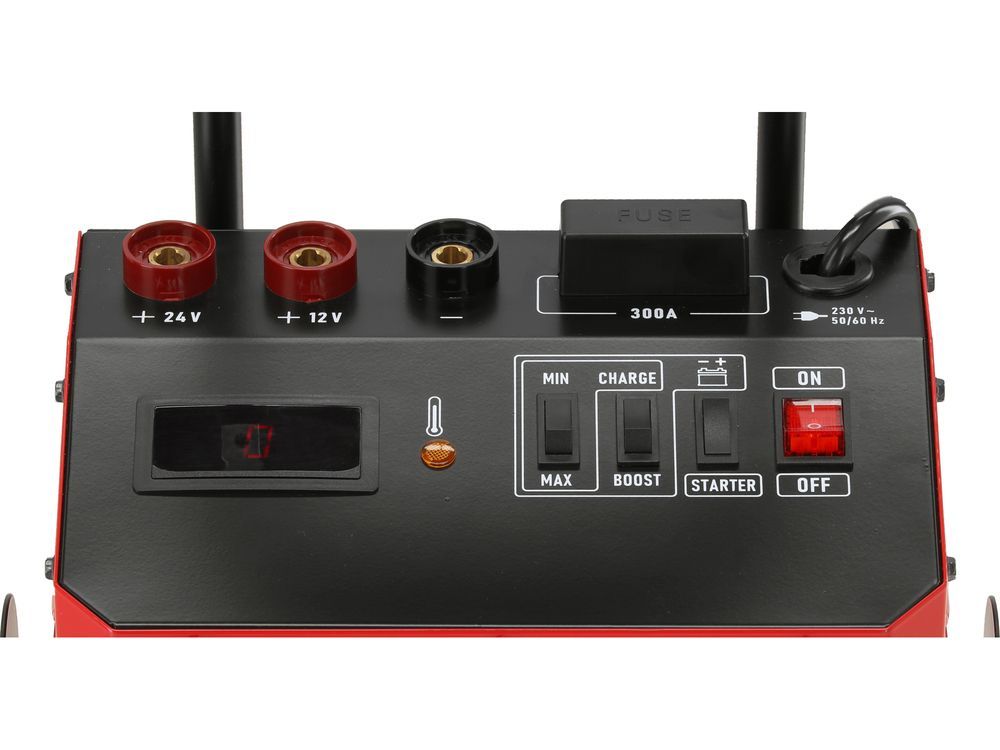 Зарядний пристрій призначений для заряджання та запуску свинцево-кислотних акумуляторів у легкових автомобілях, фургонах доставки та майстернях.