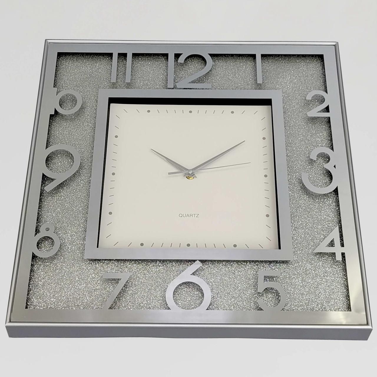 Висота: 47,8 см Ширина: 47,8 см Товщина: 4,3 см Вага: 2,070 кг Матеріал: скло, пластик Всередині годинника блискітки. Механізм: кварцовий Живлення: батарейка АА Гарантія: 12 місяців