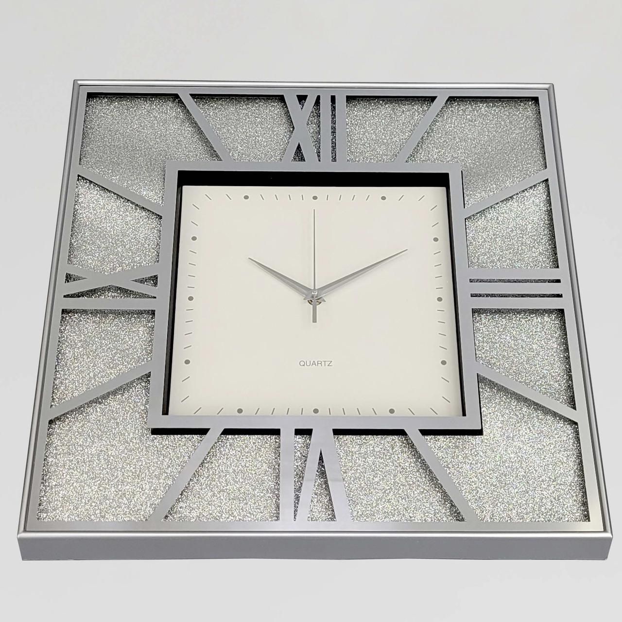 Висота: 47,8 см Ширина: 47,8 см Товщина: 4,3 см Вага: 2,070 кг Матеріал: скло, пластик Всередині годинника блискітки. Механізм: кварцовий Живлення: батарейка АА Гарантія: 12 місяців