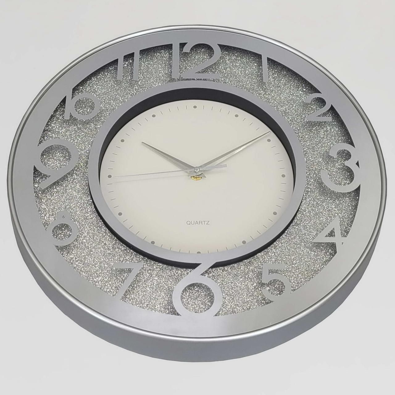 Діаметр: 40,7 см Товщина: 4,5 см Вага: 1,145 кг Матеріал: скло, пластик Всередині годинника блискітки. Механізм: кварцовий Живлення: батарейка АА Гарантія: 12 місяців