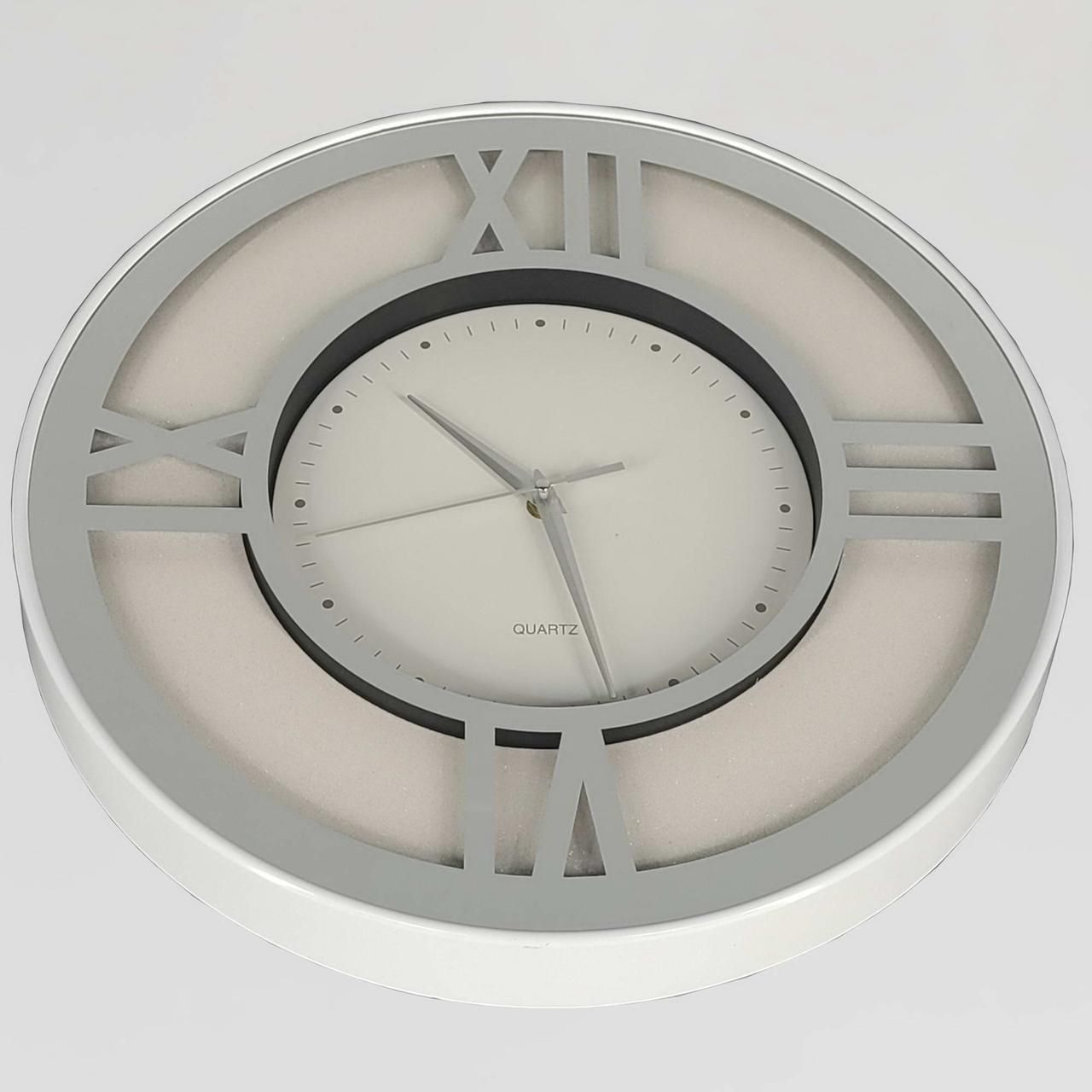 Діаметр: 40,7 см Товщина: 4,5 см Вага: 1,145 кг Матеріал: скло, пластик Всередині годинника блискітки. Механізм: кварцовий Живлення: батарейка АА Гарантія: 12 місяців