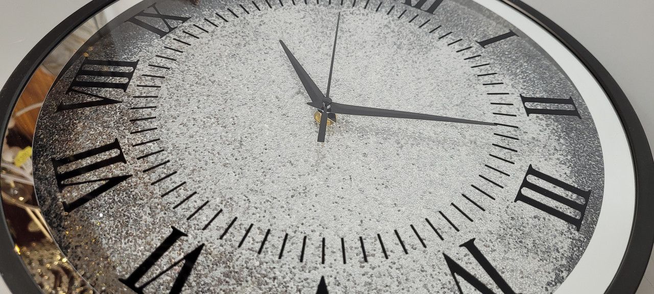 Діаметр: 35,5 см Товщина: 4 см Вага: 0,870 кг Матеріал: скло, пластик Усередині годинника маленьке декоративне каміння Механізм: кварцовий Живлення: батарейка АА Гарантія: 12 місяців