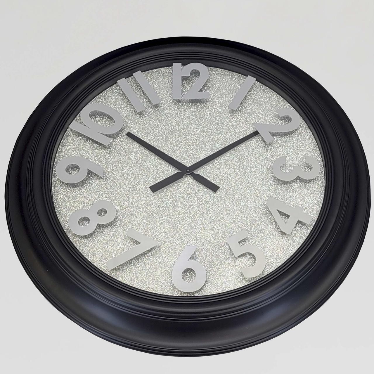 Діаметр: 76 см Товщина: 6,3 см Вага: 3,020 кг Матеріал: скло, пластик Всередині годинника блискітки. Механізм: кварцовий Живлення: батарейка АА Гарантія: 12 місяців