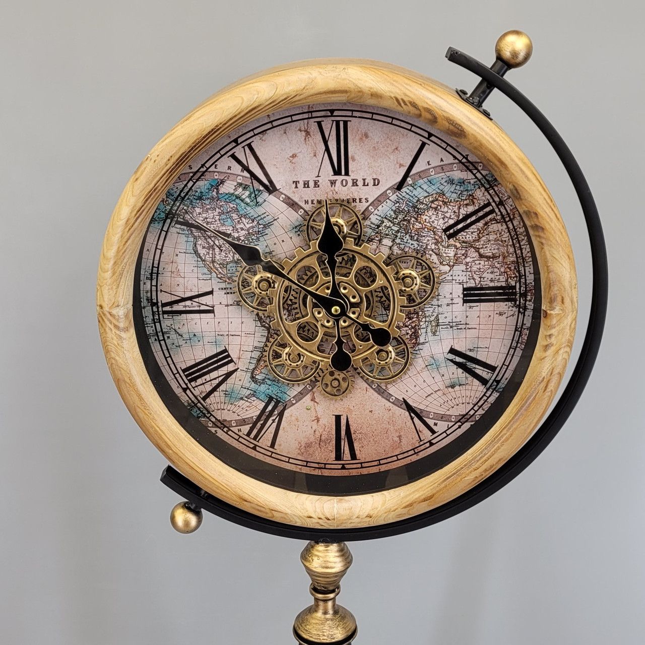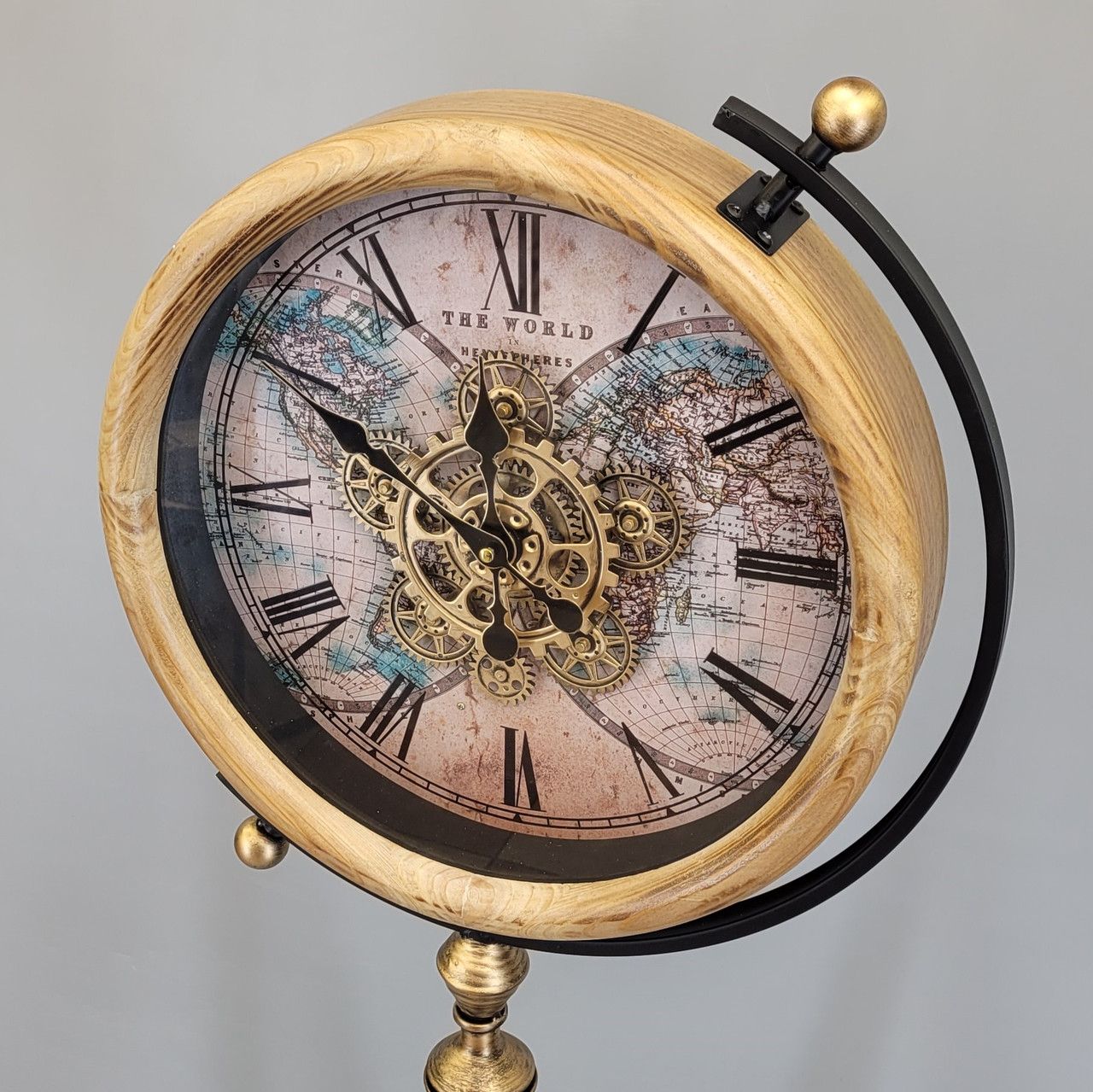 Вінтажний настільний годинник (32,6х28,2 см) з механізмом шестернями скелетон ретро В наявності