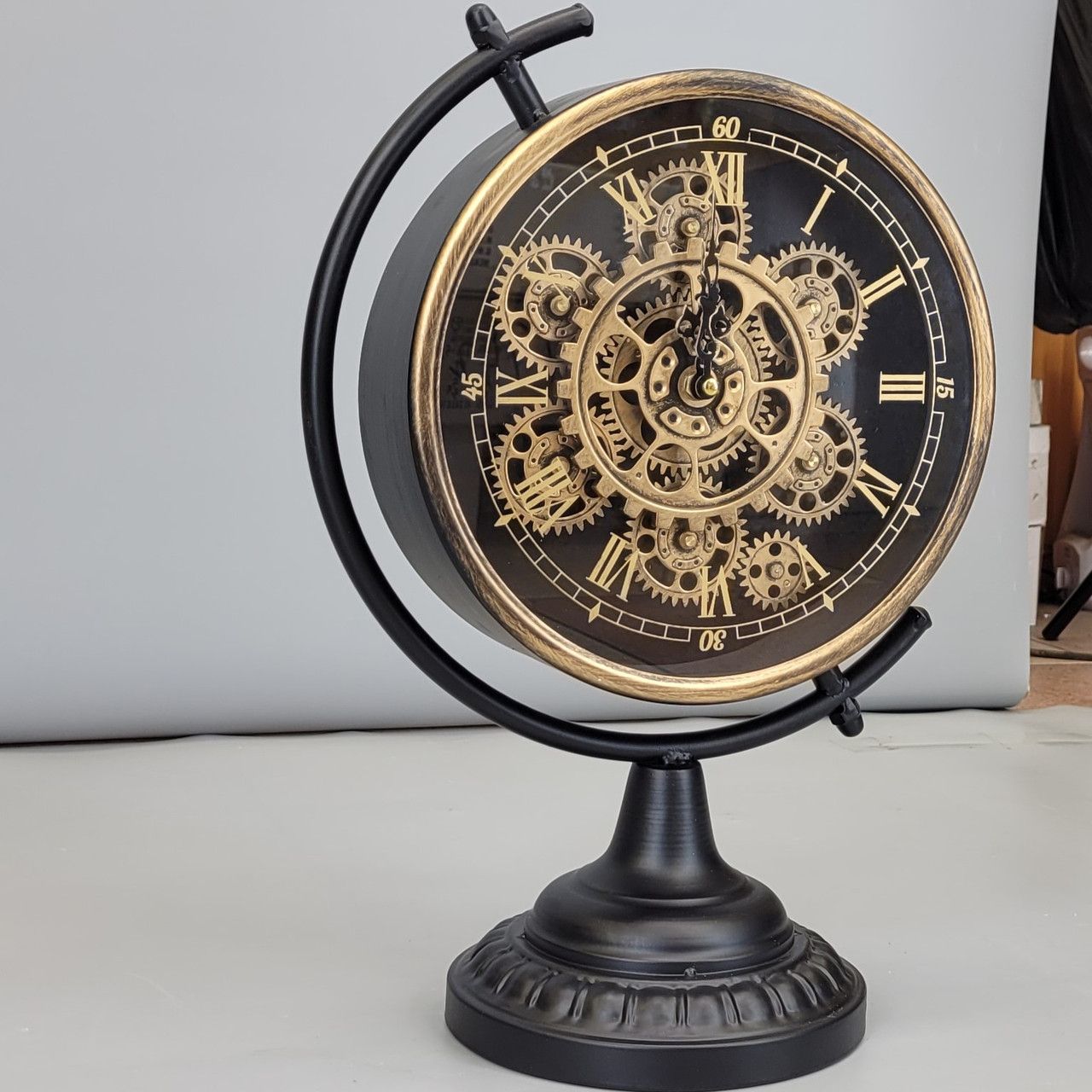 Вінтажний настільний годинник (32,6х28,2 см) з механізмом шестернями скелетон ретро В наявності