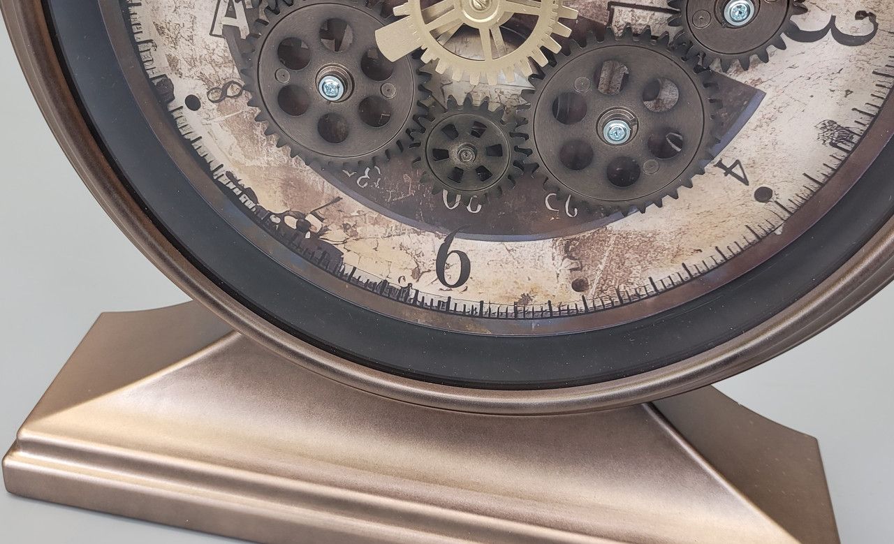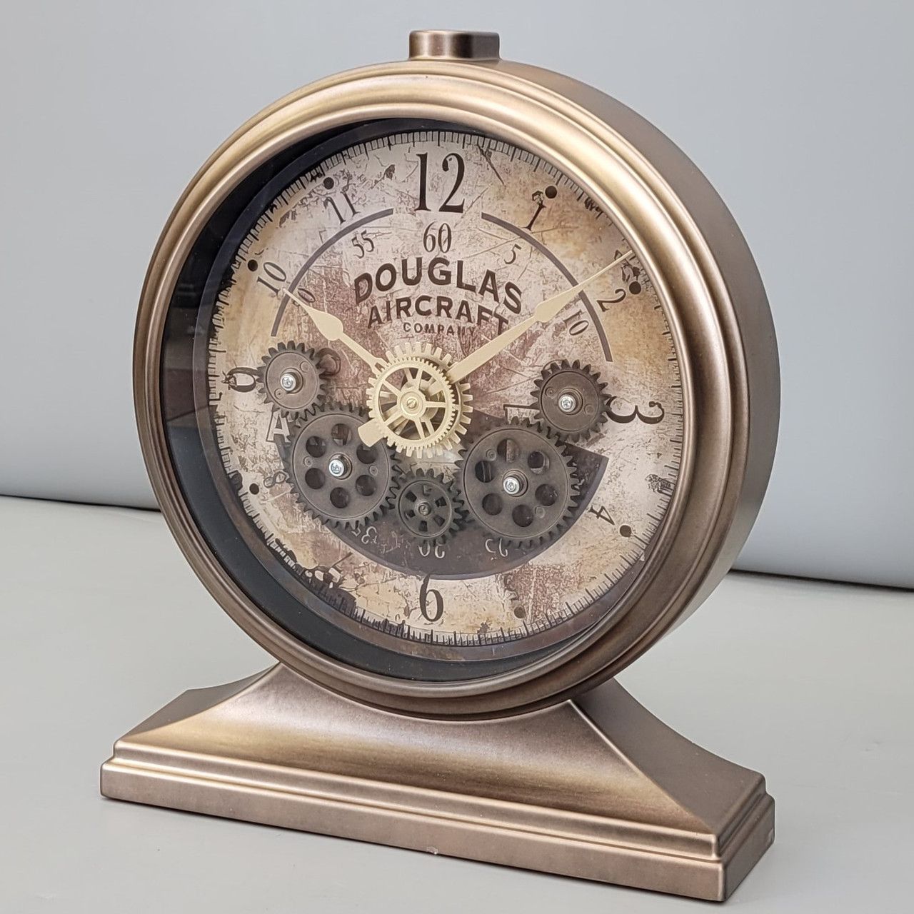 Вінтажний настільний годинник (32,6х28,2 см) з механізмом шестернями скелетон ретро В наявності