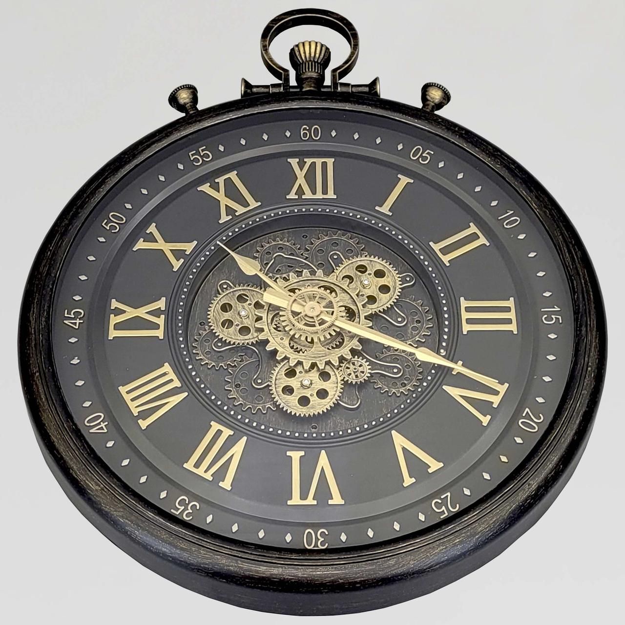 Висота: 74,5 см Ширина: 60 см Товщина: 7 см Вага: 2,850 кг Матеріал: скло, пластик Декоративні шестерні, що самостійно обертаються через додаткові батареї. Механізм: кварцовий Живлення: батарейка АА Гарантія: 12 місяців