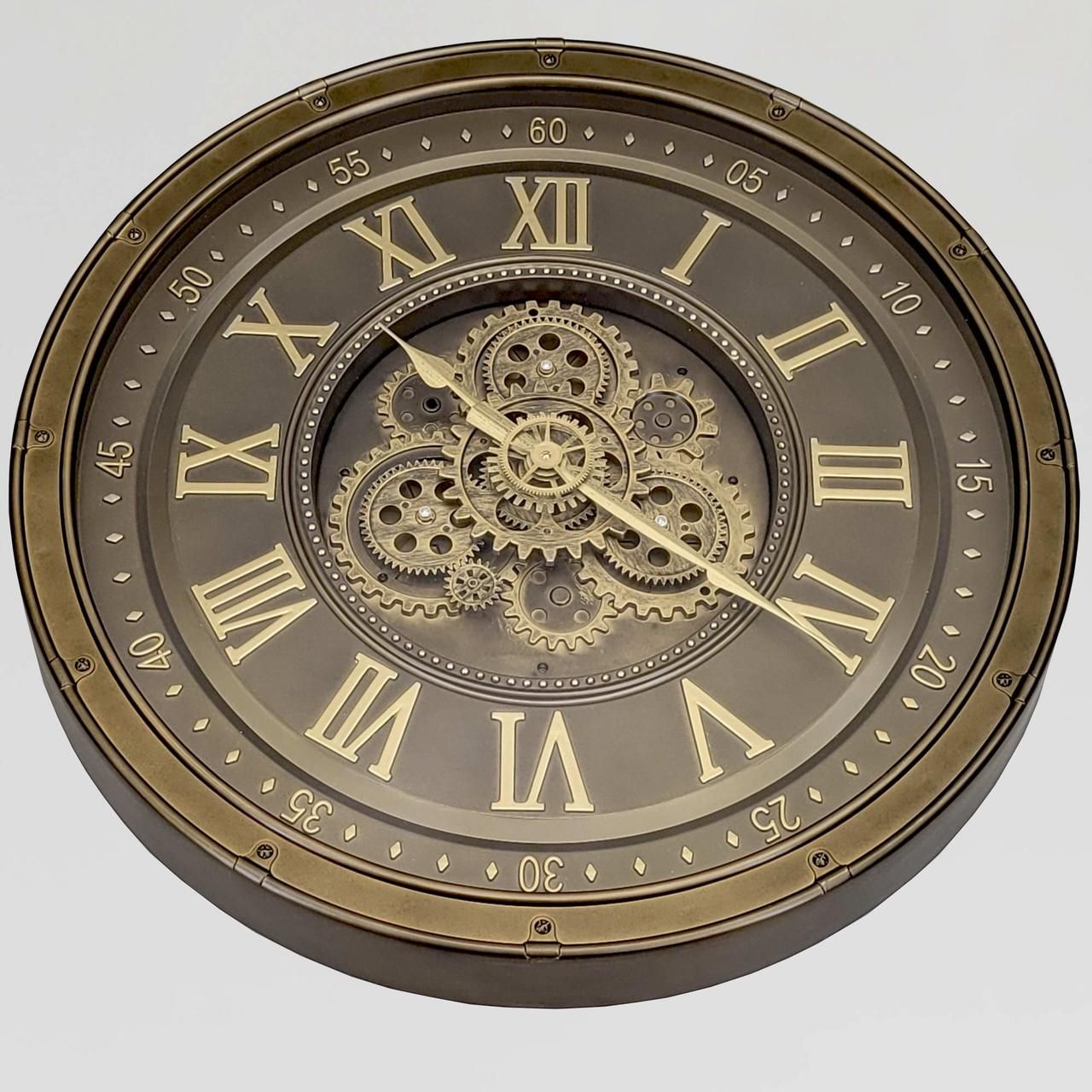 Діаметр: 60 см Товщина: 7,2 см Вага: 2,830 кг Матеріал: скло, пластик Декоративні шестерні, що самостійно обертаються через додаткові батареї. Механізм: кварцовий Живлення: батарейка АА Гарантія: 12 місяців
