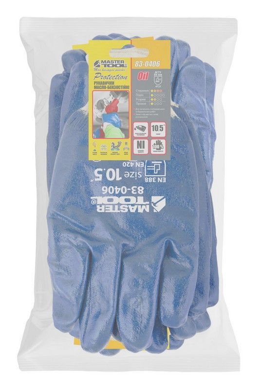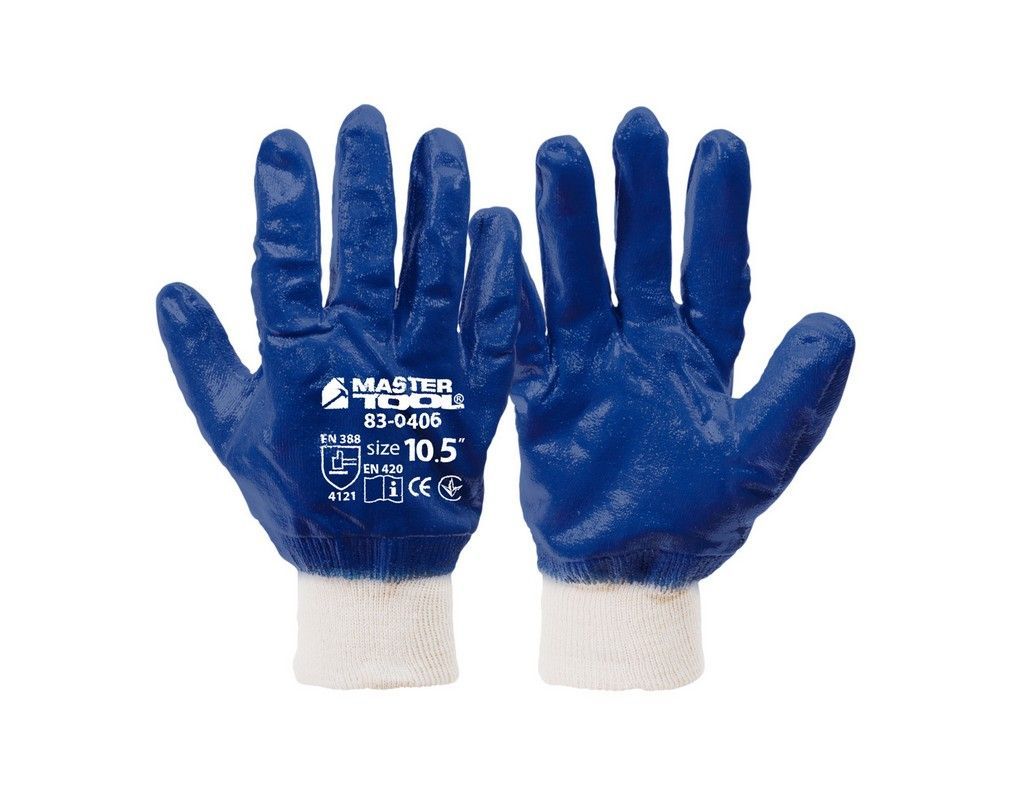 Рукавички масло-бензостійкі повне нітрилове покриття в'язаний манжет 10.5" 12 пар сині MASTERTOOL 83-0406doz