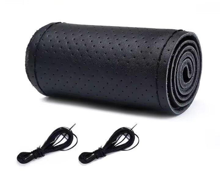 Шкіряний чохол на кермо автомобіля чорний 105*10,5 см